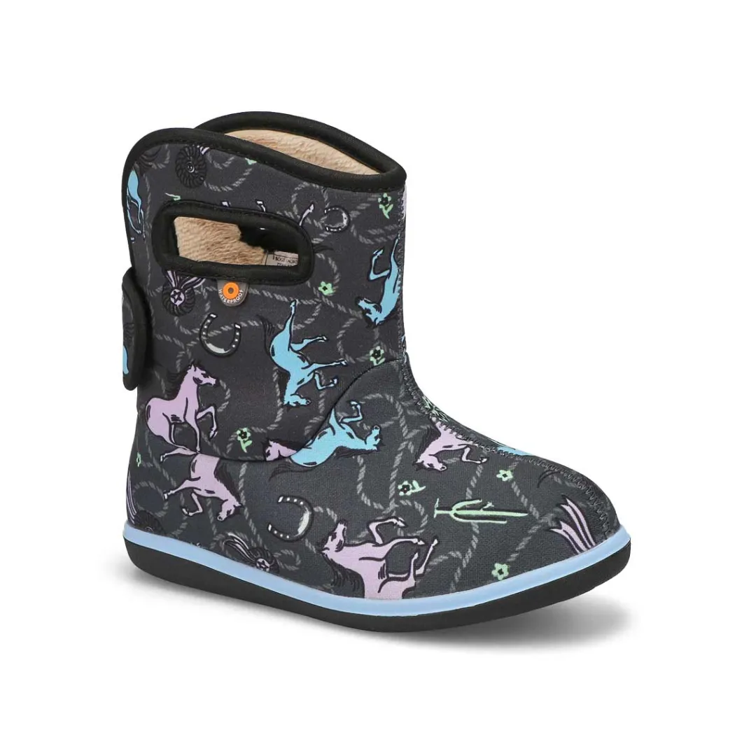 The Baby Bogs II Rainbow Planet waterproof boot by Bogs will keep them warm and dry in damp, chilly weather with a waterproof build and Neo-Tech insulation. Fuzzy plush lining adds an extra snuggly feel, and a hook-and-loop strap makes them simple to get on and off. They will never want to take them off!