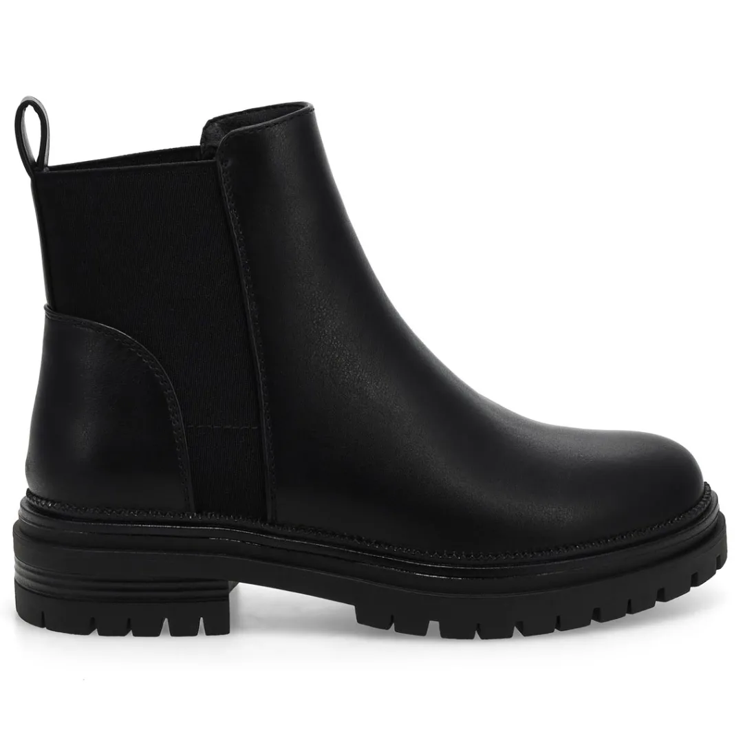 For a classic look, get yourself into a pair of the Beaming Chelsea black boot from Steve Madden. Featuring a smooth PU upper. Light cushioned footbed for added comfort with synthetic lining that surrounds the foot in comfort. Elastic goring for easy on and off. The Billiee is made with a durable rubber outsole. Approx. 1.5 inch heel height.