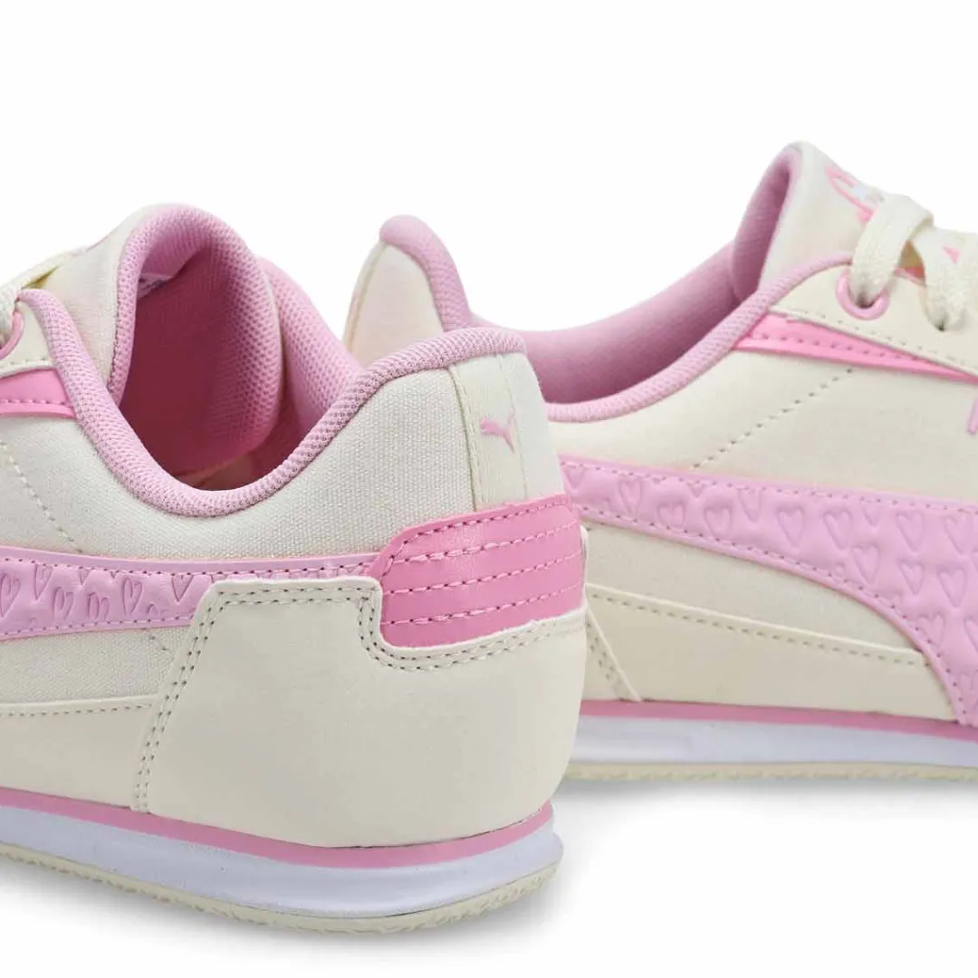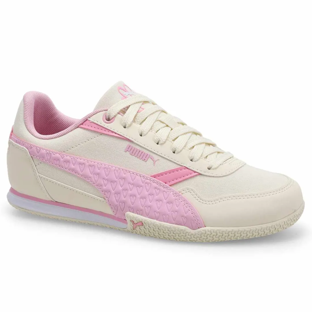 The Bella Donna With Love low profile sneaker from Puma features a leather upper with a sleek synthetic leather formstrip. These kicks bring sporty vibes with a slim, versatile fit. The SOFTFOAM+ sockliner and die-cut EVA tooling deliver all-day ease, making every step effortless. Own your look with PUMA’s bold energy.