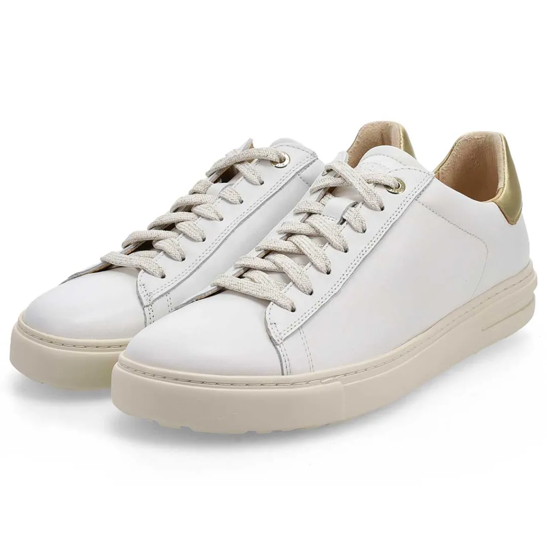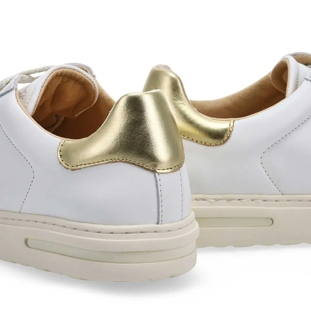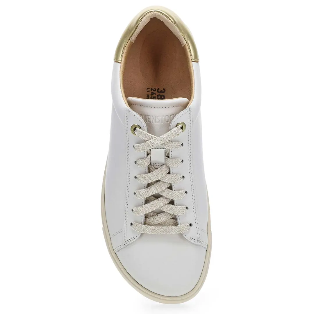 Meet the only sneaker with premium Birkenstock support—the Bend white/ metallic gold lace up sneaker. . An original contoured footbed grounds each pair in custom comfort, shaping to your feet with wear to give you all-day support. In a classic, lace-up style that can go for miles. Made in Portugal.