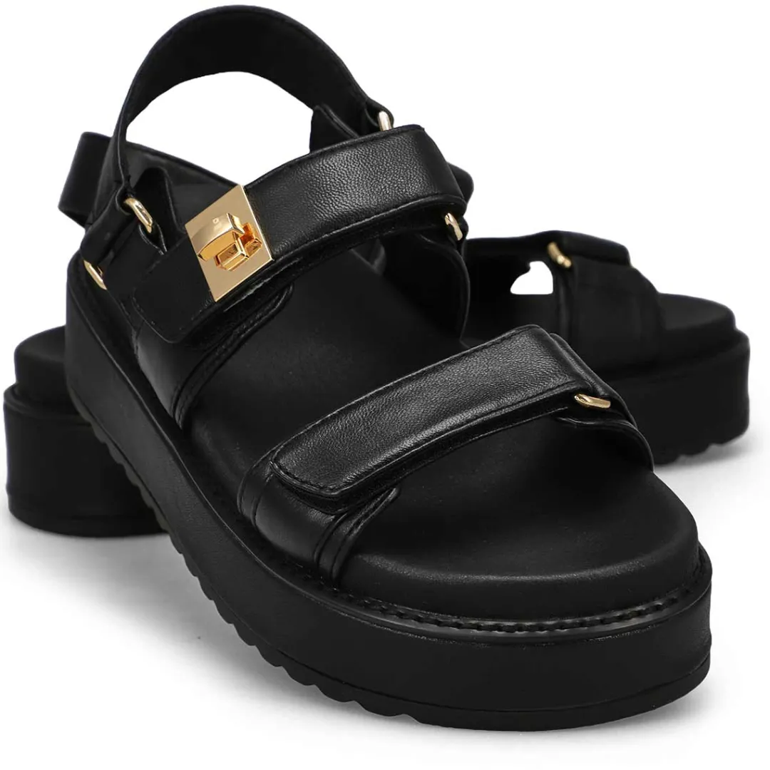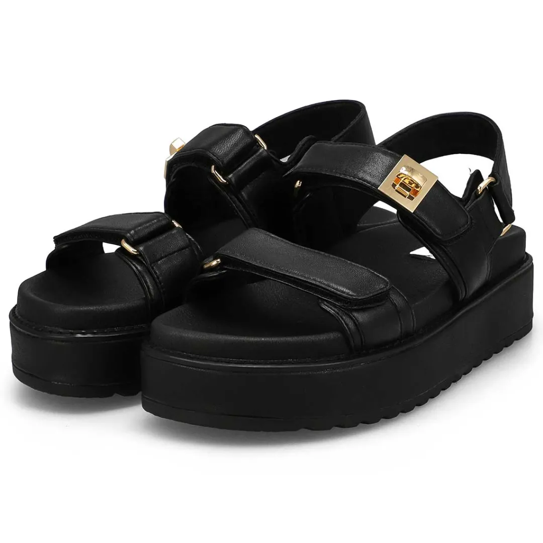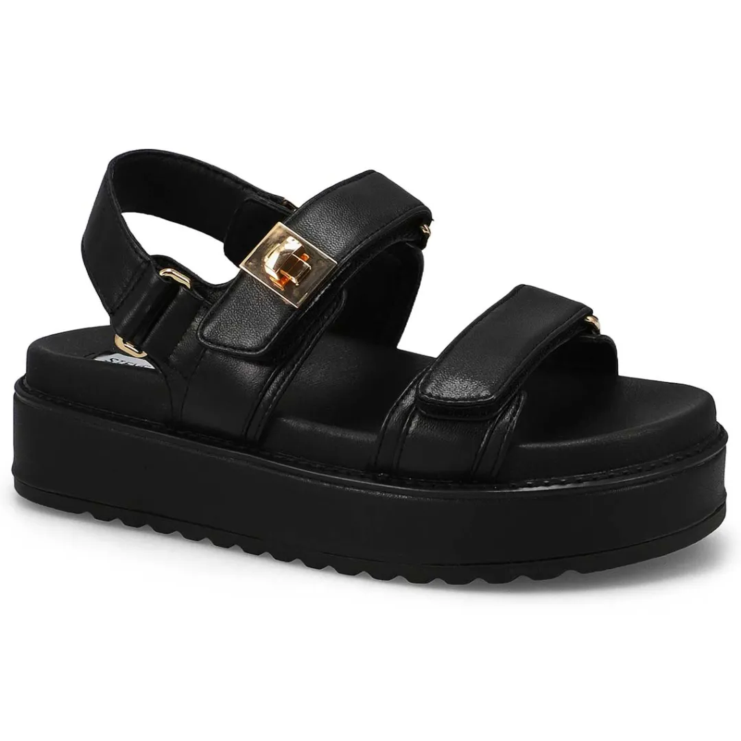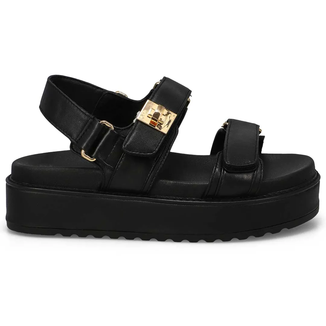 The Big Mona black platform sandal from Steve Madden takes their Mona sandal with its classic turnlock hardware accent and boosts the design up on a chunky flatform sole for a little extra height. Designed with a leather upper, the Big Mona platform sandal will bring you trendy styling this season!