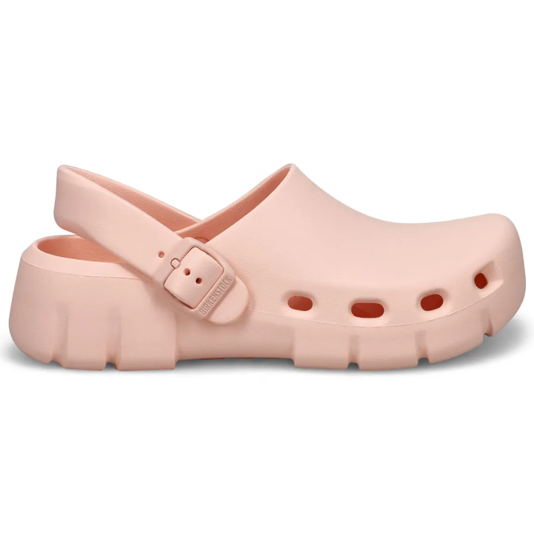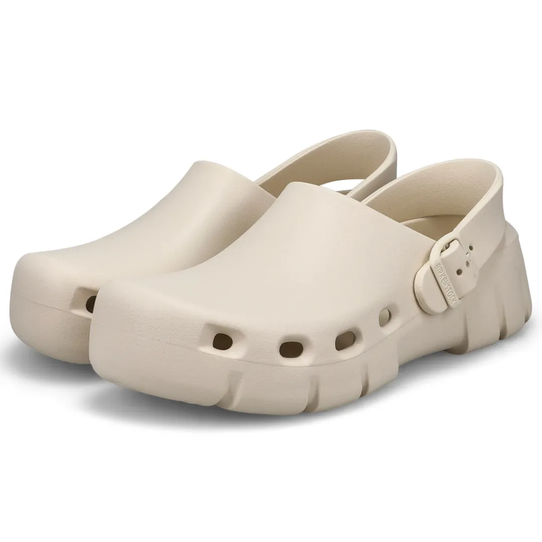 Introducing Birkenstocks first post-sport recovery clog, the all-new Birki Flow. Designed around the contours of Birkenstocks iconic footbed, the Birki Flow builds off their best-selling EVA clogs with an ultra-breathable, water-friendly style. Complete with classic Birkenstock design cues, from the adjustable backstrap to molded buckle. Washable, flexible & ultra-lightweight. Made in Germany.