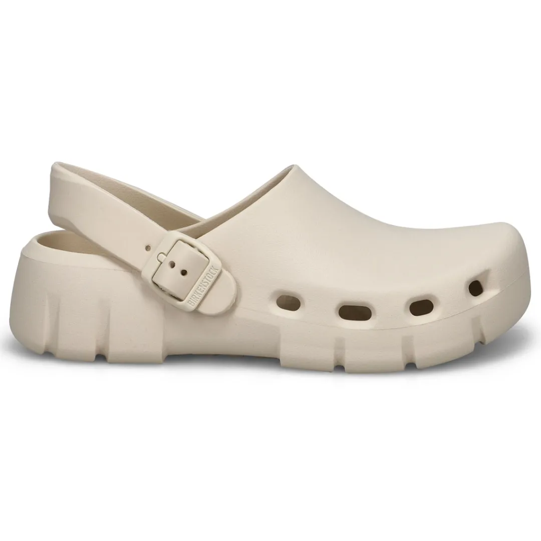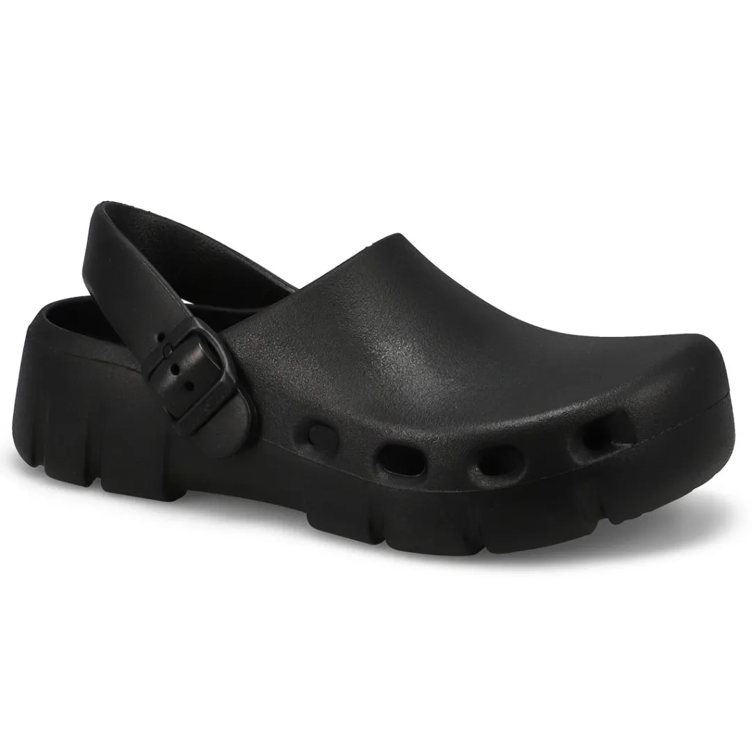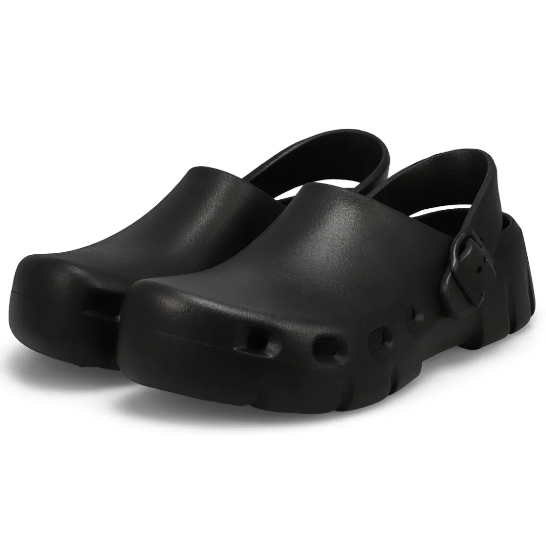 Introducing Birkenstocks first post-sport recovery clog, the all-new Birki Flow. Designed around the contours of Birkenstocks iconic footbed, the Birki Flow builds off their best-selling EVA clogs with an ultra-breathable, water-friendly style. Complete with classic Birkenstock design cues, from the adjustable backstrap to molded buckle. Washable, flexible & ultra-lightweight. Made in Germany.