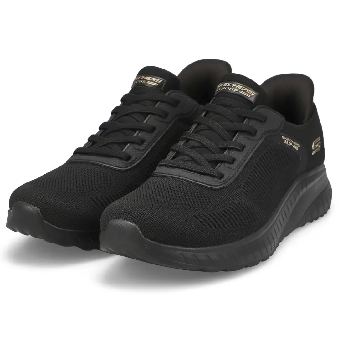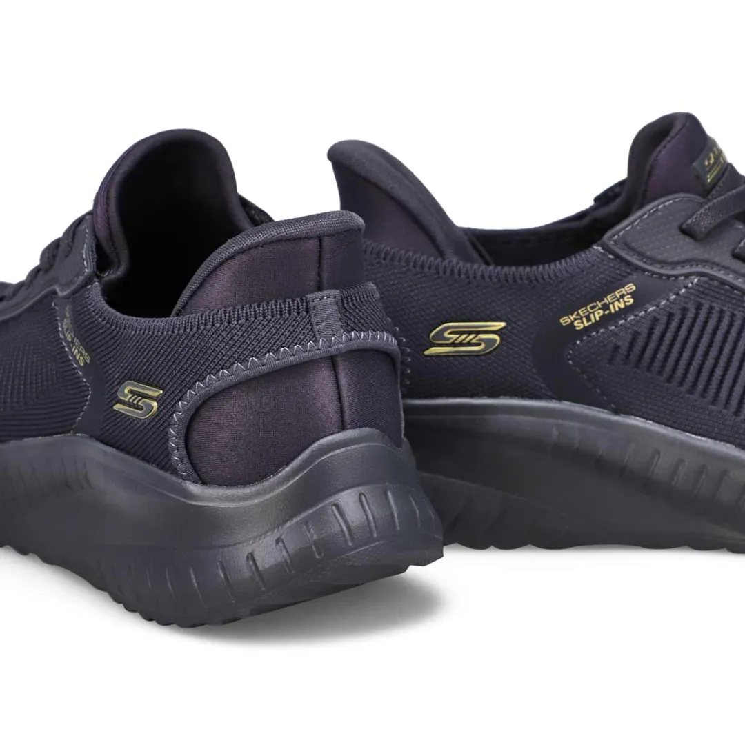 Step into athletic style and comfort wearing the Hands Free Slip-ins: BOBS Sport Squad olive Sneaker from Skechers. Designed with Skechers’ Exclusive Heel Pillow that helps hold your foot securely in place. This fashion style features an engineered knit upper with stretch laces and a cushioned Skechers Memory Foam comfort insole.