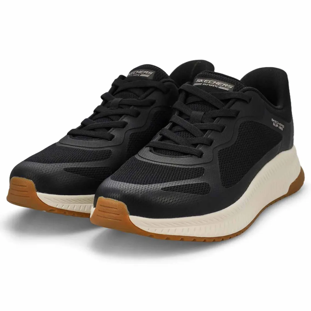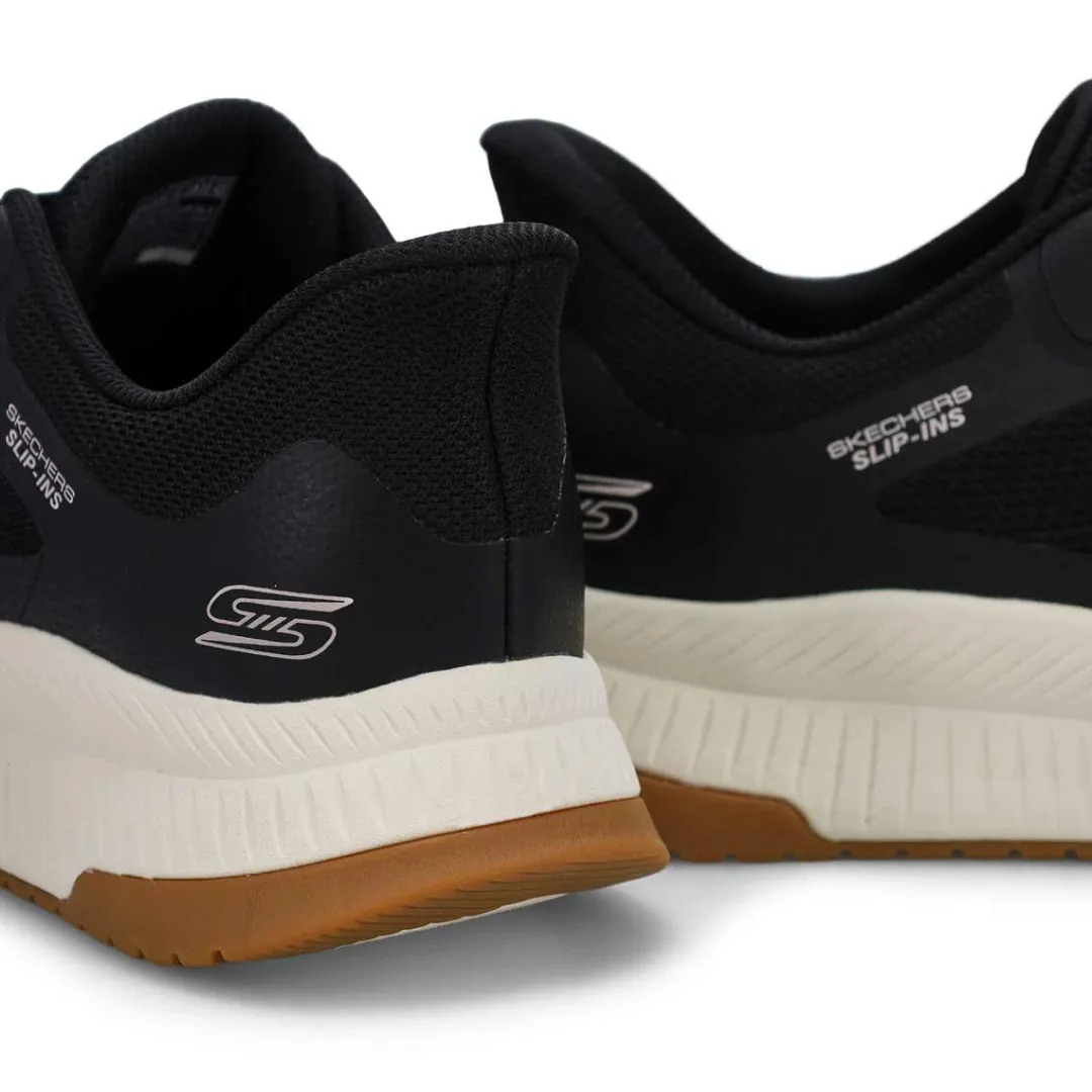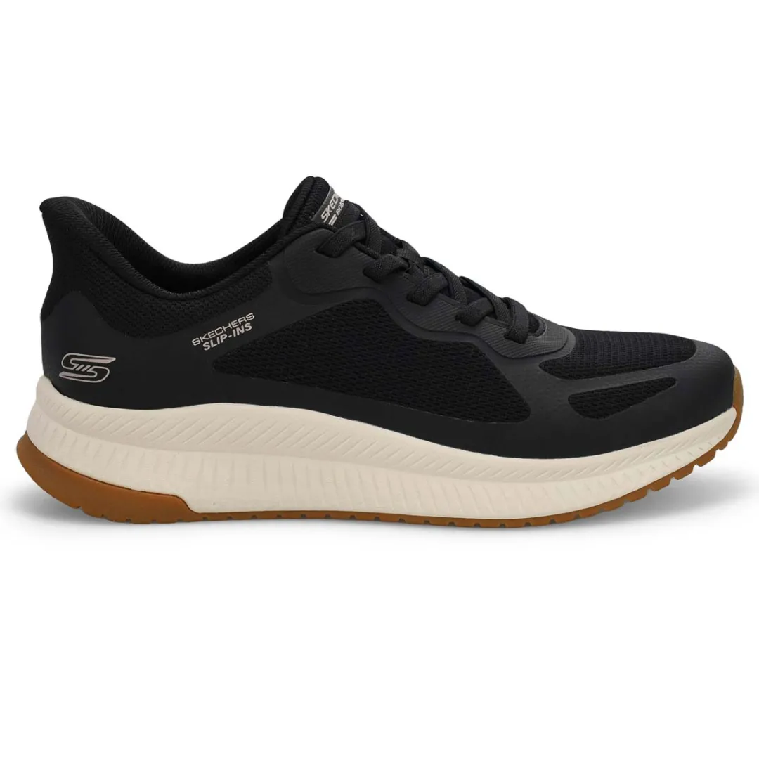Step into athletic style and comfort wearing the Hands Free Slip-ins: BOBS Sport Squad white Sneaker from Skechers. Designed with Skechers’ Exclusive Heel Pillow that helps hold your foot securely in place. This fashion style features an engineered knit upper with stretch laces and a cushioned Skechers Memory Foam comfort insole.