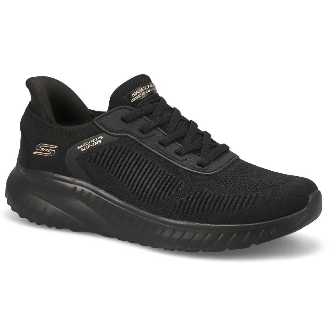 Step into athletic style and comfort wearing the Hands Free Slip-Ins Bobs Sport Squad 4 blue/ multi sneaker from Skechers. Designed with Skechers’ Exclusive Heel Pillow that holds your foot securely in place. This sporty style features a mesh and synthetic upper with stretch laces and a cushioned Skechers Memory Foam insole. Wide Width.