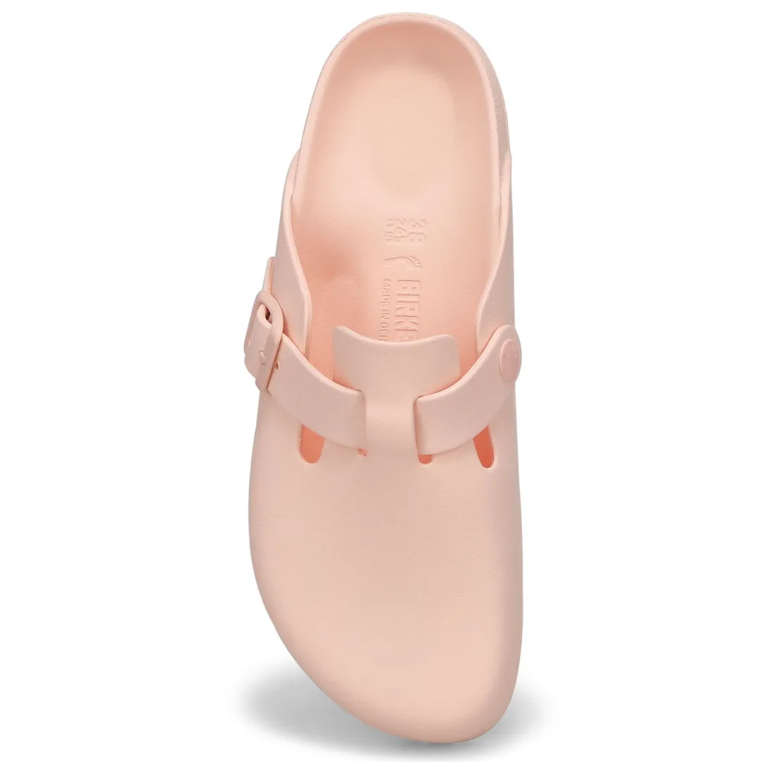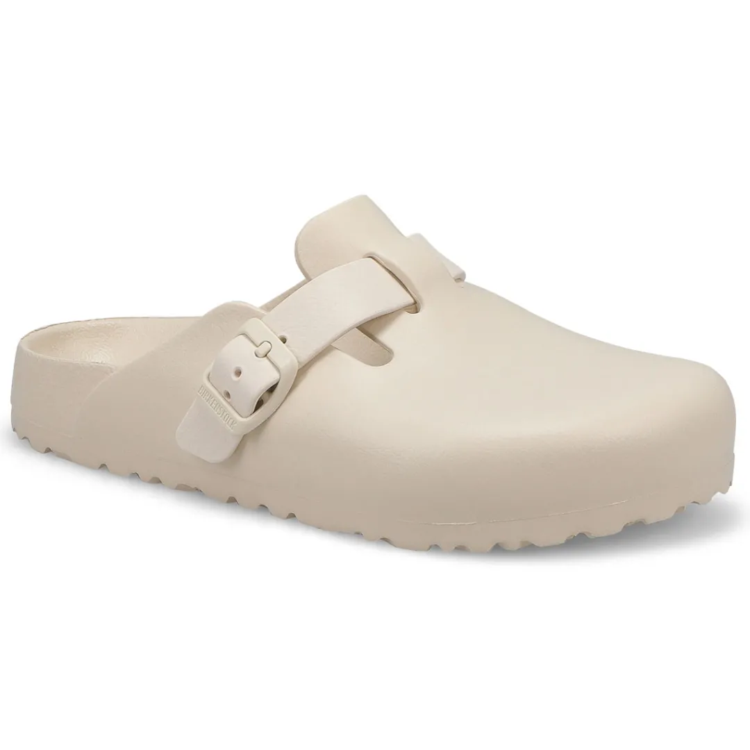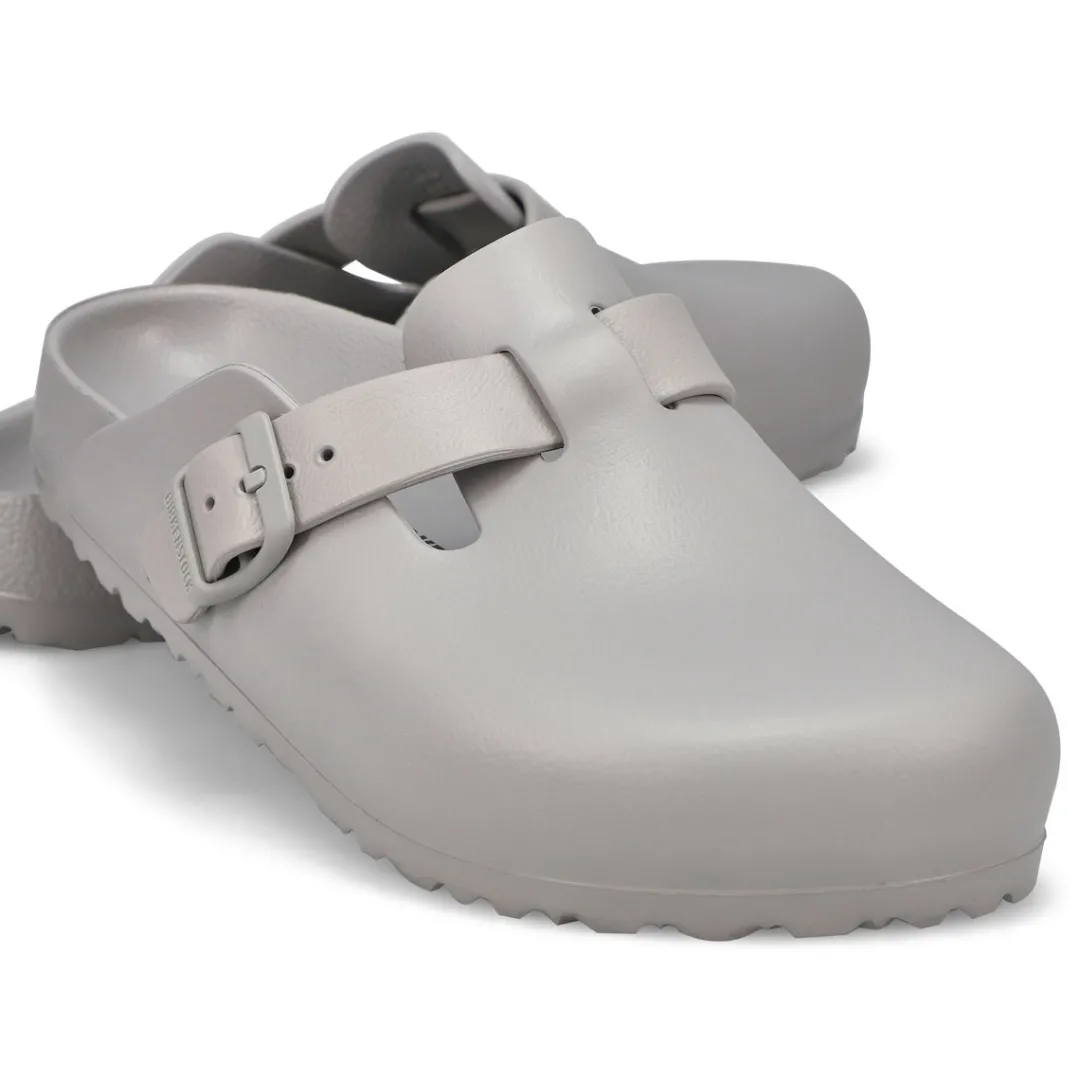 The Boston EVA is made from water-friendly material, giving you a flexible design built on the contoured footbed you love most. The perfect pair for pre-workout, post-practice and all the rest days in between. The days will be filled with walking comfort, without compromising good looks and style. This Birkenstock sandal is a genuine classic, emphasizing the handcrafted and natural look of stylish sandals. A comfort legend and a fashion staple. Narrow Width.