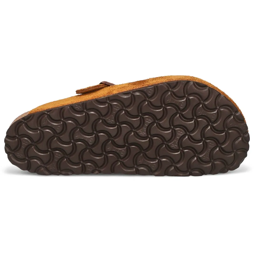 The Boston suede casual clog from Birkenstock with a soft cushioned footbed provides excellent arch support. Durable EVA outsole, cork footbed molds to each individual foot to provide a custom fit. This Birkenstock sandal is a genuine classic, emphasizing the handcrafted and natural look of stylish sandals. A comfort legend and a fashion staple.