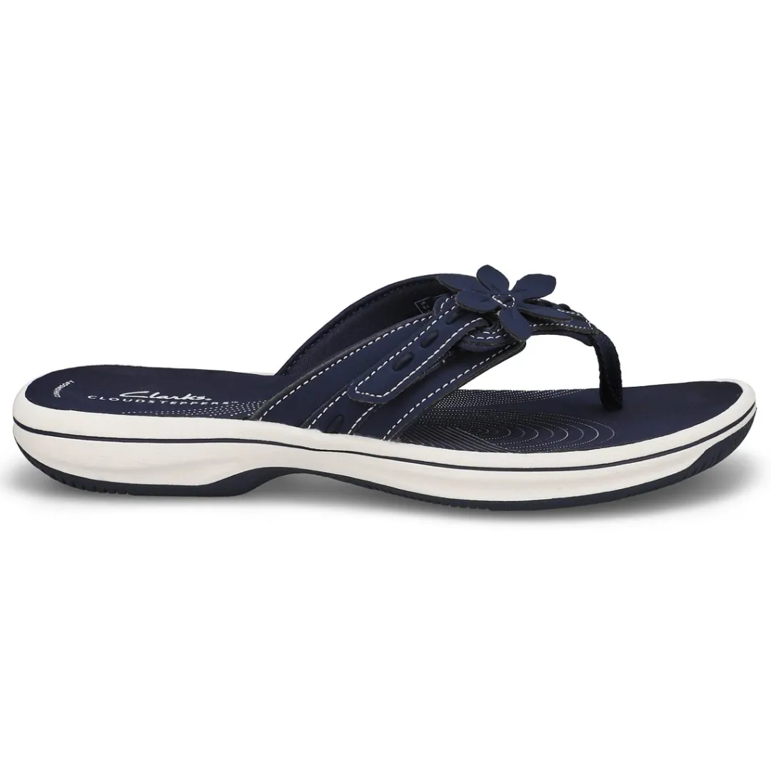 Topped with a pretty flower detail, the Breeze Opal sky blue thong flip-fllop sandal from Clarks is part of their Cloudsteppers collection, so you know that total underfoot comfort is a sure thing. It’s crafted with soft synthetic uppers for a skin-gentle feel, while grippy soles make for confident support and easy-breezy steps.