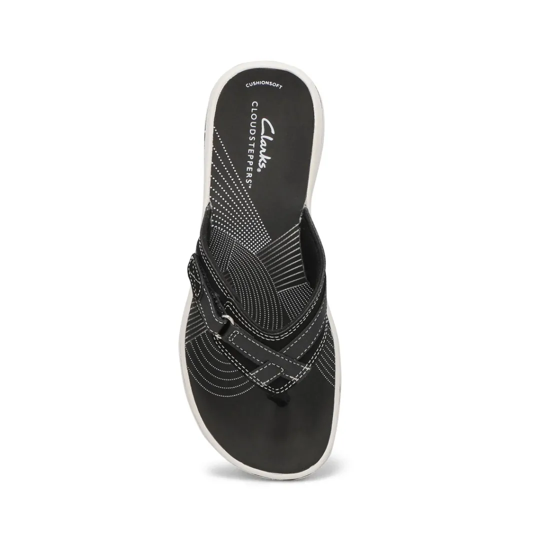 Add some fun design to your warm-weather wear with the Breeze Sea black thong sandal from Clarks. An EVA midsole and a soft EVA footbed allow this classic flip-flop to be incredibly lightweight and comfortably supportive. A subtle closure on its strap makes for a secure, adjustable fit while providing extra visual interest. Perfect for every beach on your summer getaway list.