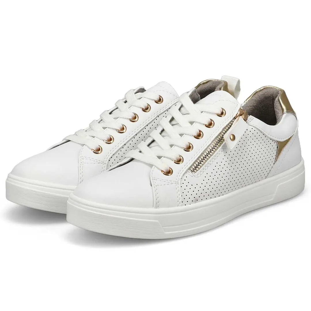 Freshen your fall footwear rotation with this classic kick. The Brooke white lace up sneaker from Steve Madden features clean lines with a cushioned collar for added comfort. Featuring a synthetic upper with a textile lining that surrounds the foot in comfort. Lace up styling for a secure fit. You will want to make the Brooke lace up sneaker part of his must-have list for this season!