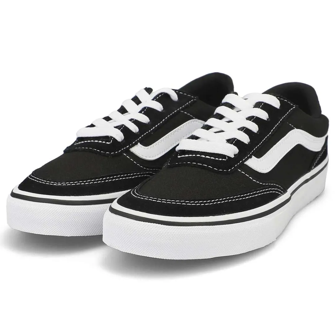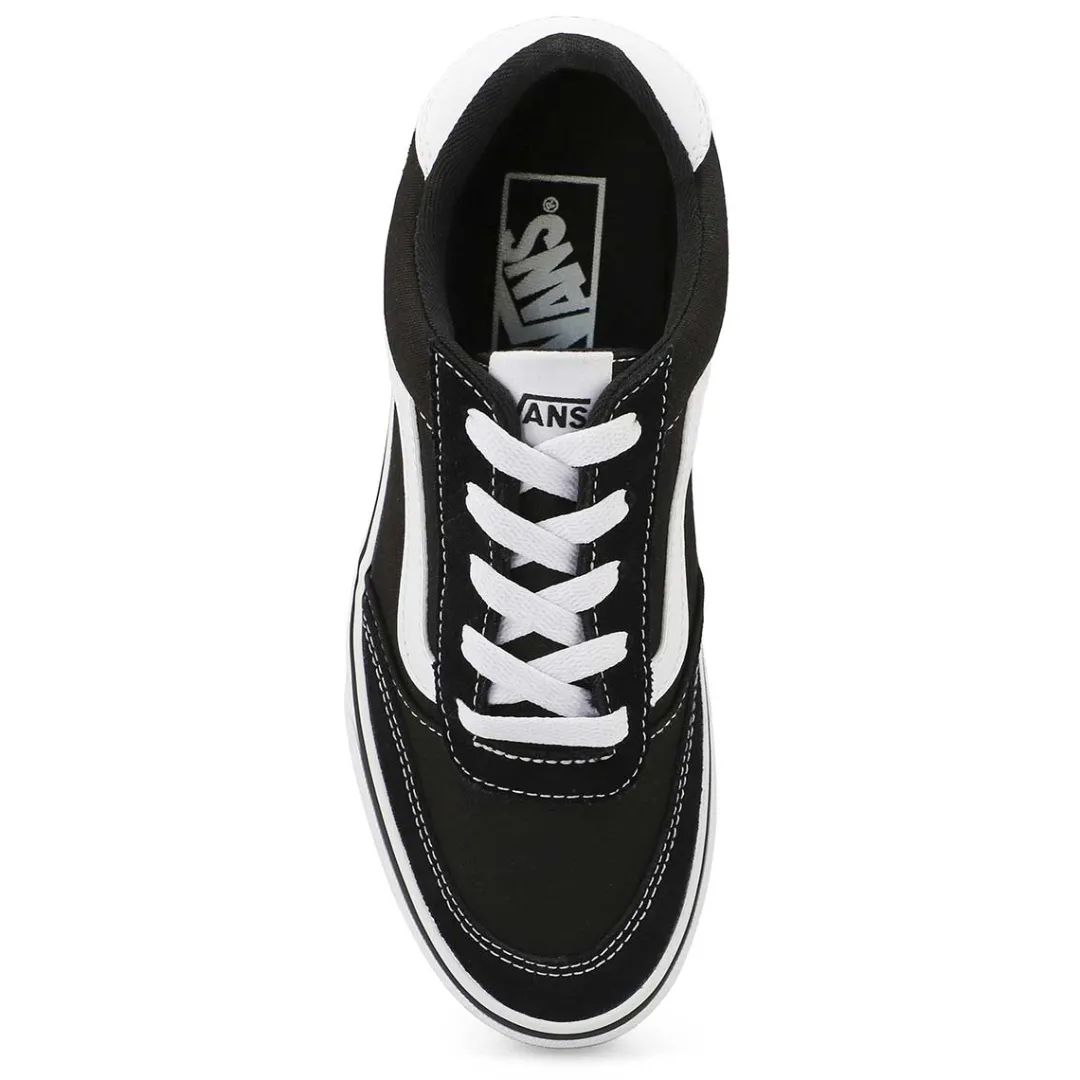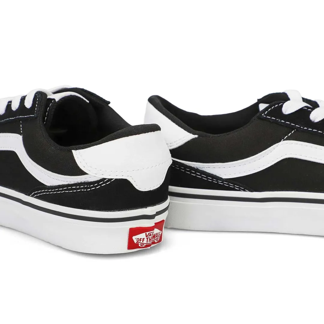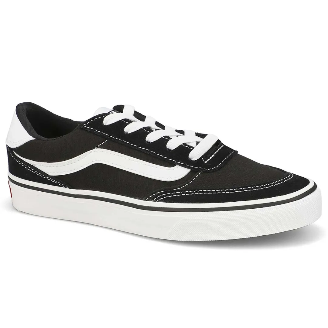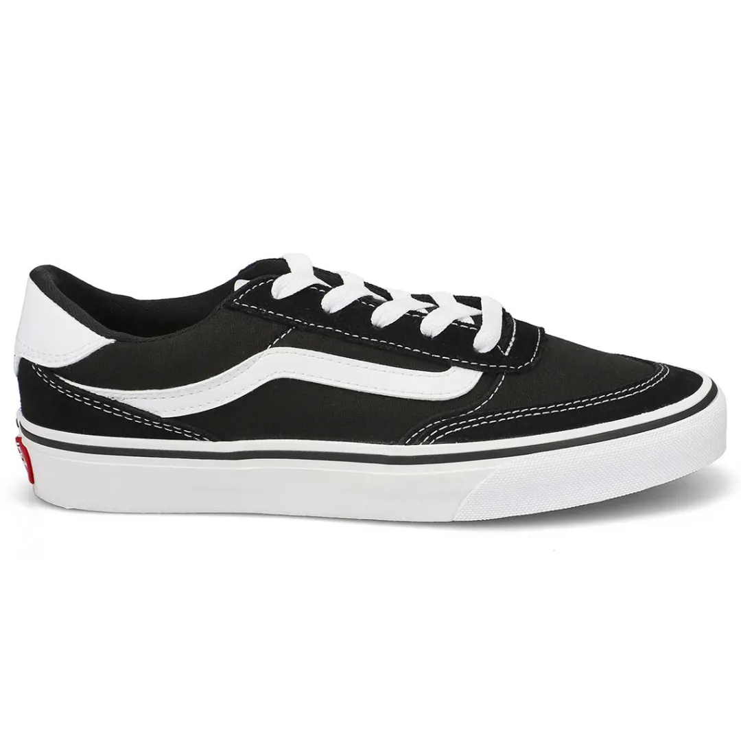 The Vans Brooklyn LS black /white lace up sneaker from Vans is a contemporary low-top sneaker that blends classic skate-inspired design with modern comfort features that offer a versatile look suitable for everyday wear. Combination of canvas and suede for durability and style. Lace-up design for a secure fit. Padded collar and cushioned footbed provide all-day comfort.