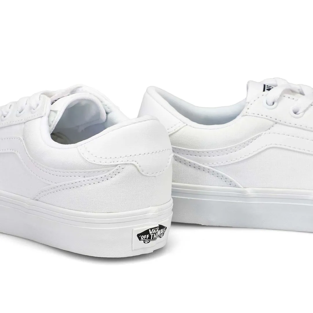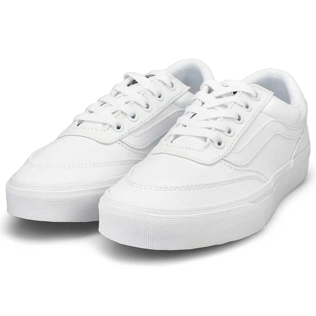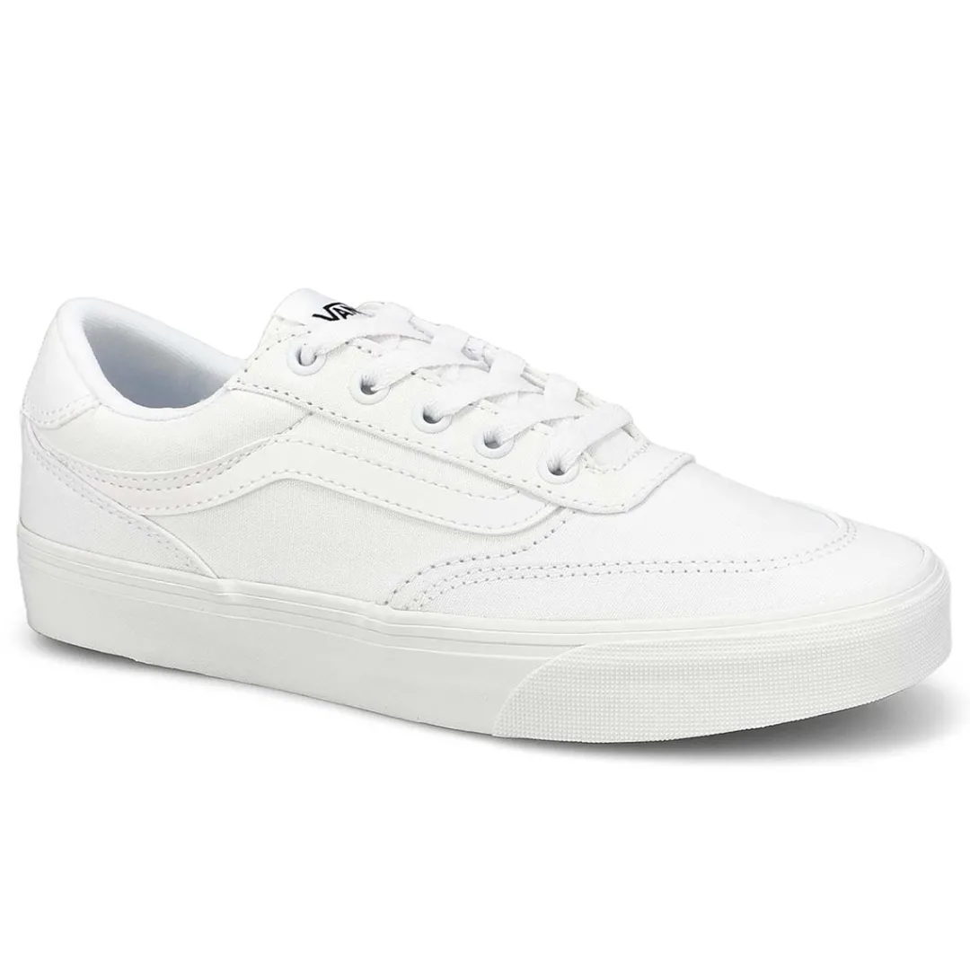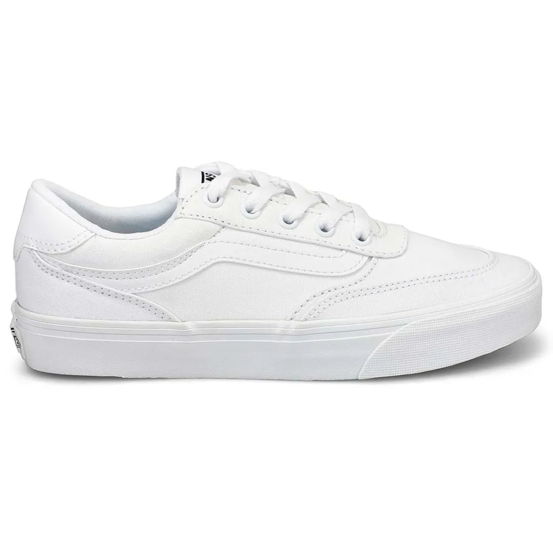 The Vans Brooklyn LS white/ white lace up sneaker from Vans is a contemporary low-top sneaker that blends classic skate-inspired design with modern comfort features that offer a versatile look suitable for everyday wear. Combination of canvas and suede for durability and style. Lace-up design for a secure fit. Padded collar and cushioned footbed provide all-day comfort.