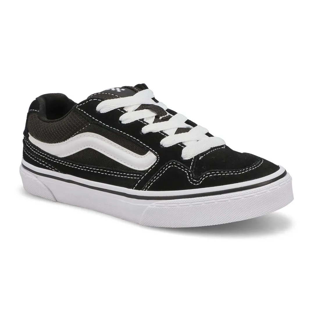 They will want to hit up the skatepark in the Caldrone black/ white sneaker from Vans. This trendy low-top sneaker features a canvas and suede upper with lace-up closure for a secure fit and a supportive padded collar and tongue. A cushioned insole keeps your feet feeling great, while the Waffle rubber outsole provides fantastic traction.