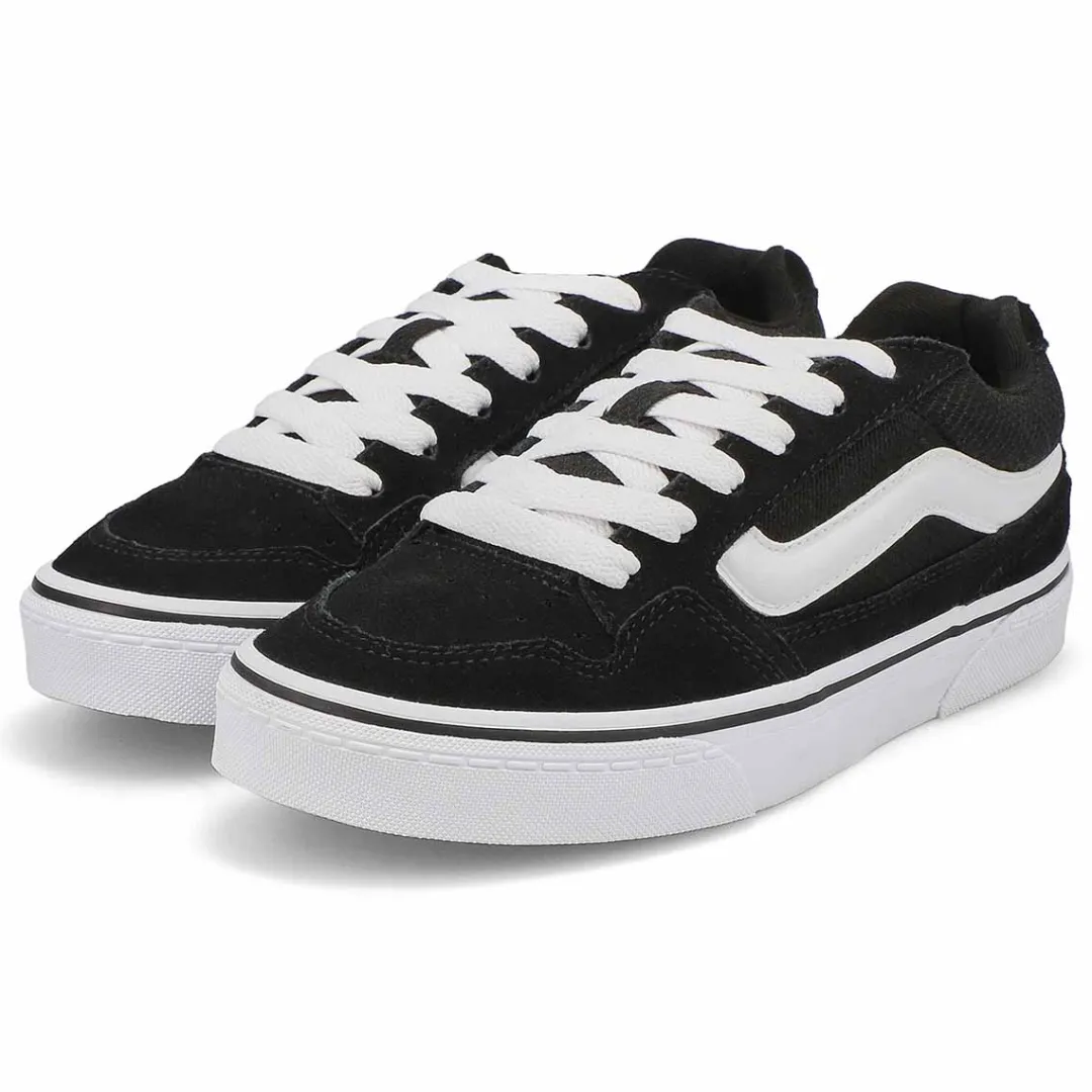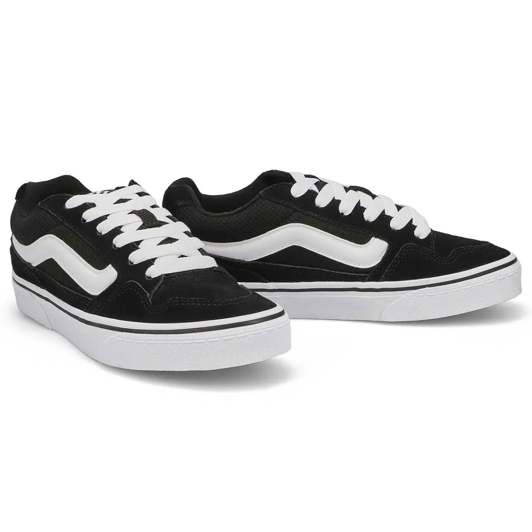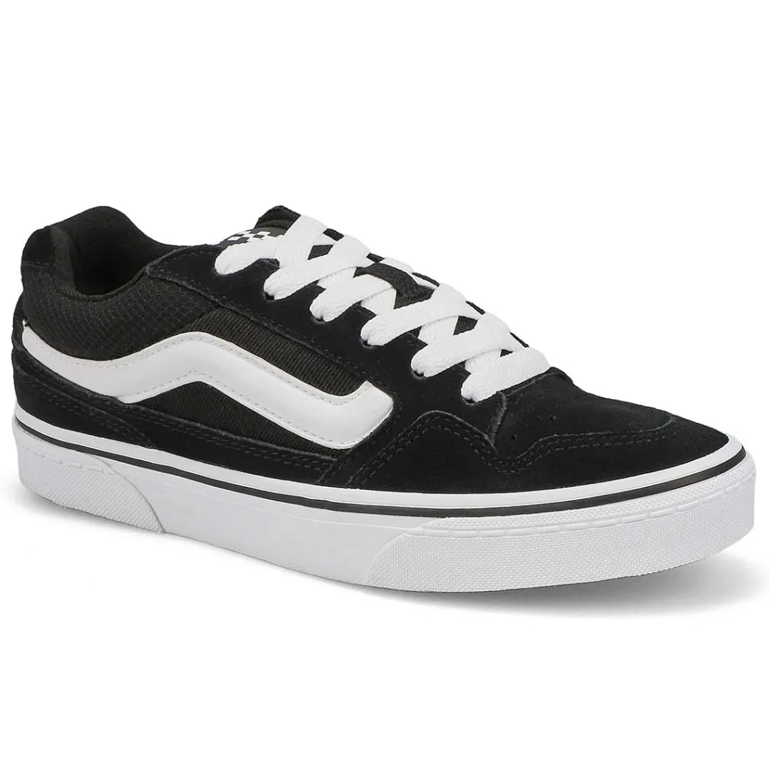 You will want to hit up the streets in the Caldrone black/ white sneaker from Vans. This trendy low-top sneaker features a canvas and suede upper with lace-up closure for a secure fit and a supportive padded collar and tongue. A cushioned insole keeps your feet feeling great, while the Waffle rubber outsole provides fantastic traction.