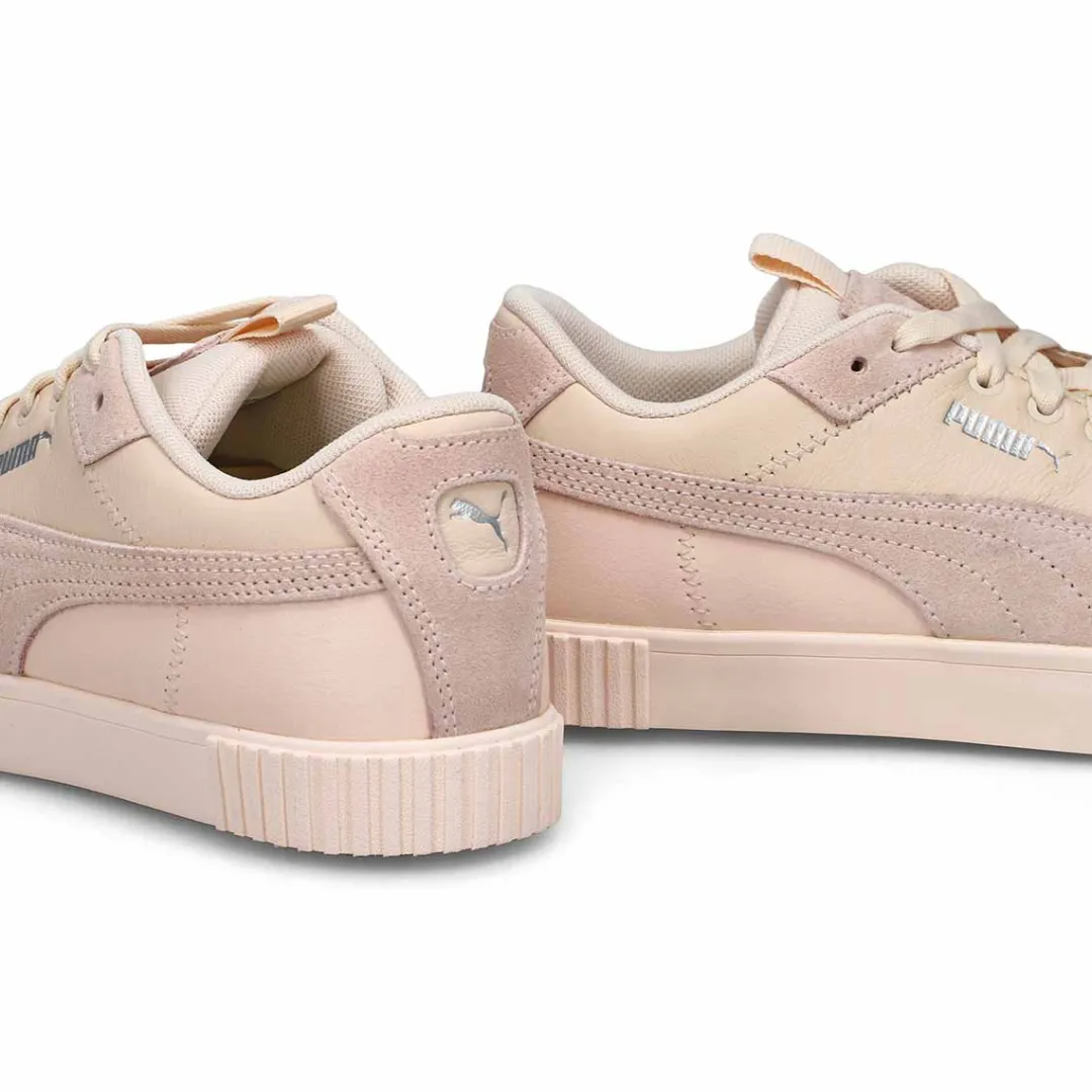 The Cali G rose bay Golf Shoe from Puma is designed with an Innovative outsole, providing the stylish profile appearance of a fashion-forward sneaker yet offering excellent recessed spikeless traction. Cali G has been re-engineered for the course, featuring a hidden traction outsole, a ProFoam cushioned midsole, a removable footbed, and a full grain leather upper.