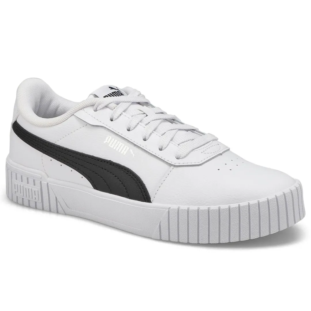 Introducing the Carina 2.0 lace up sneaker from Puma. Taking its design cues from the ’80s, this classic tennis silhouette feels right at home with the laid-back sneaker style of Californian beach towns. Staying true to its beloved look and feel, Carina steps into the new season with some refreshments: wider lines on the heel and perforations on the vamp bring added edge. What’s more, our SOFTFOAM+ sockliner is there to provide soft cushioning and comfort all day long.