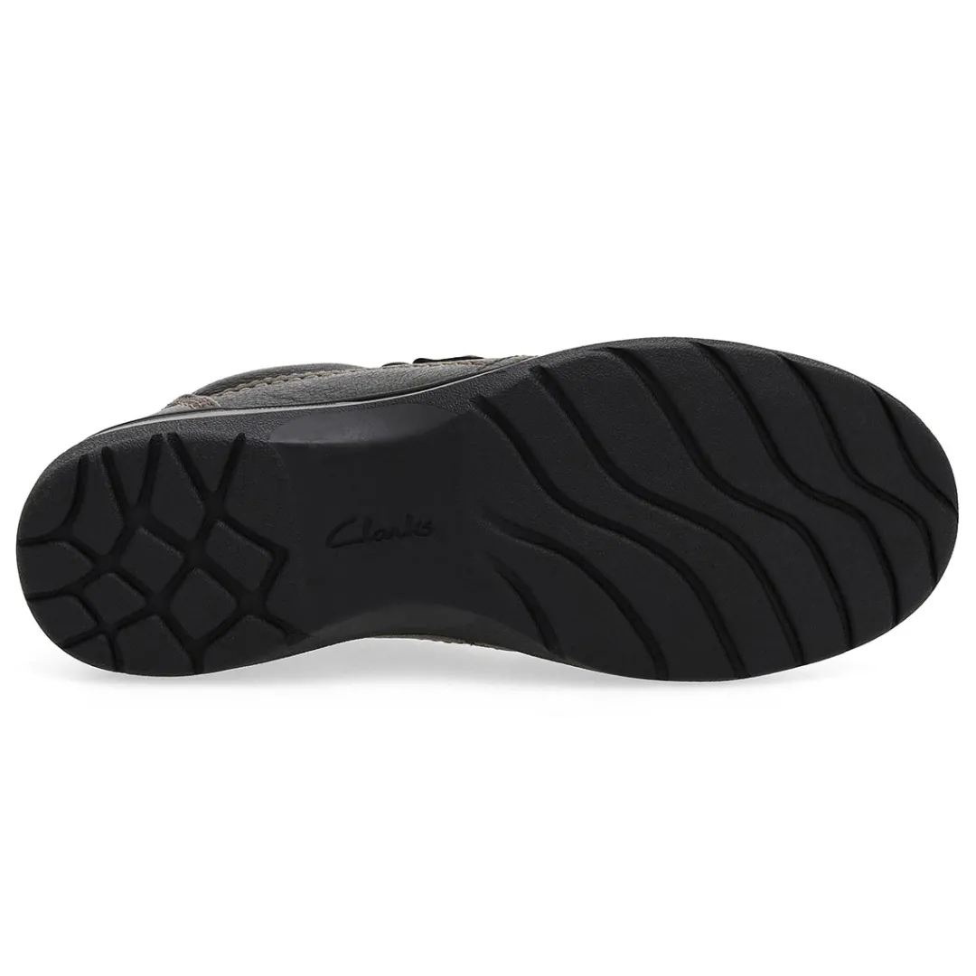 Keeping comfort at its core, Clarks trusty everyday shoe, the Carleigh Ray wide casual shoe that is crafted for back-to-work and busy weekend wear. Durable combination suede and leather uppers in classic black wrap the foot perfectly, while our signature underfoot cushioning and a super-grippy sole keep every step grounded. Wide Width