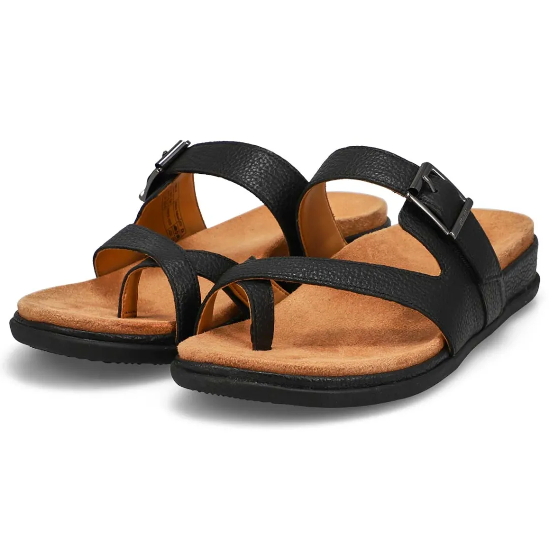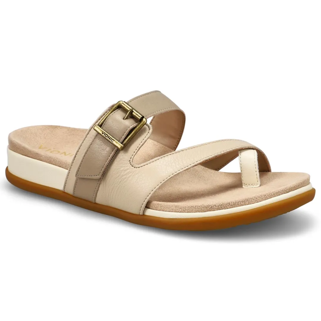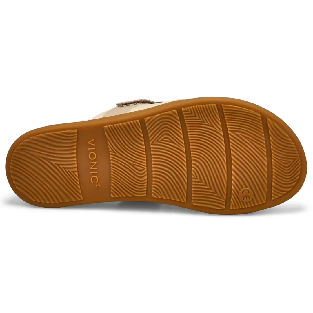Delight in Carmela toe-post loop sandal with just enough coverage and an adjustable hook-loop strap-wrapped footbed designed for optimal comfort. Designed with exclusive alignment technology to balance the whole you. The Vionic carmela two strap casual tan sandal features a leather upper, microfiber covered EVA footbed, and a durable synthetic outsole.