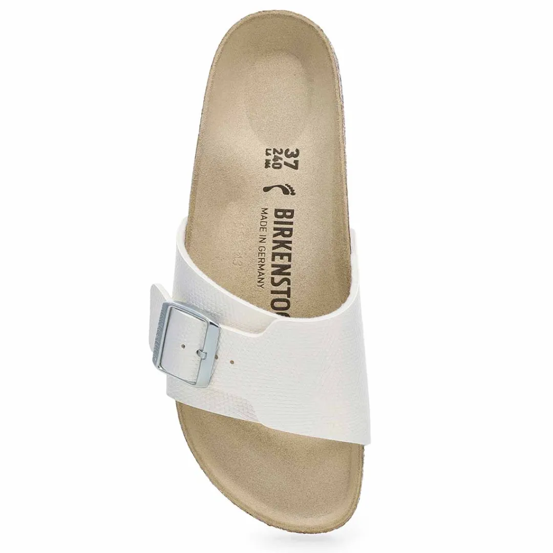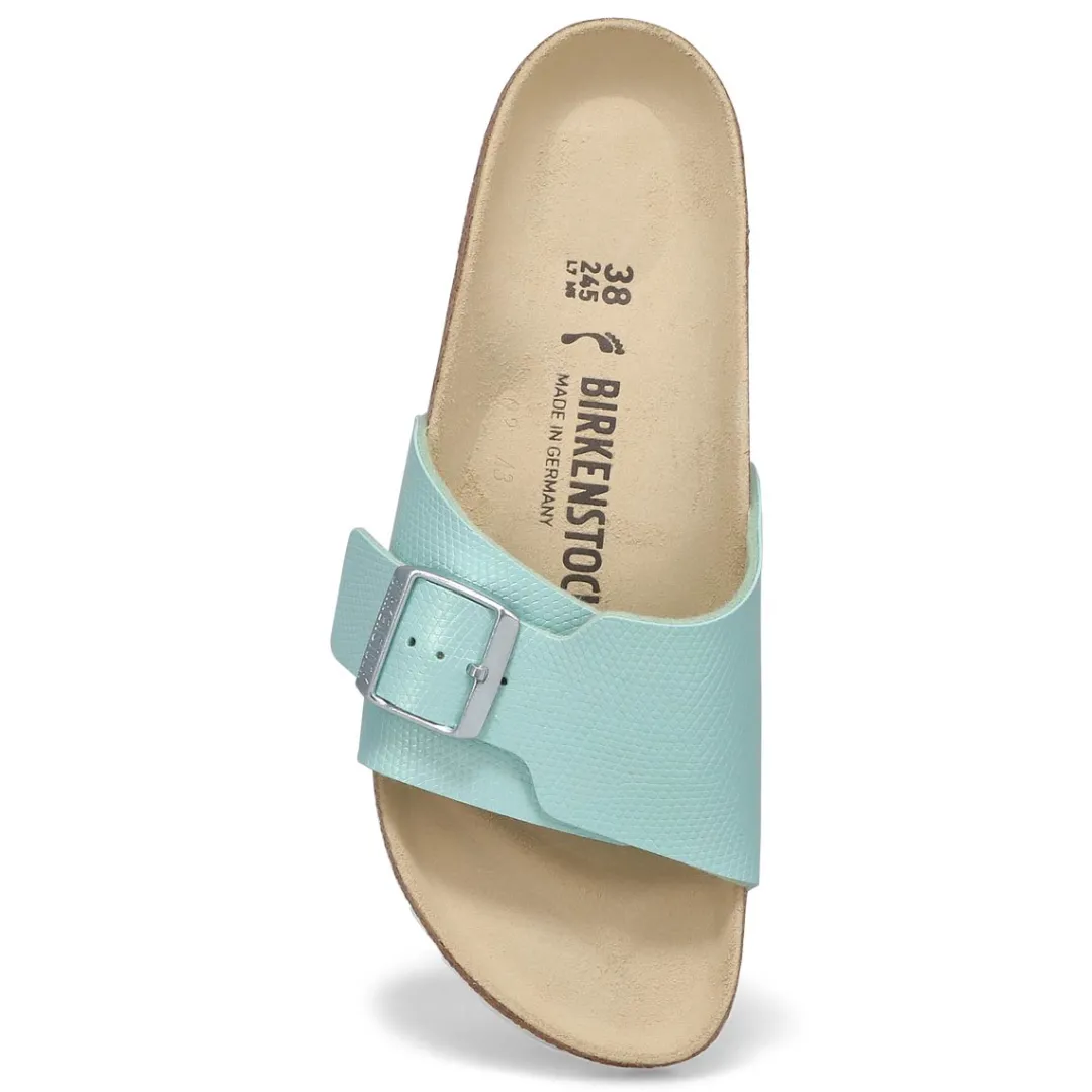 Introducing the iconic Birkenstockdesign reimagined for today. The Catalina birko-flor narrow sandal expands on their single-strap look with the perfect coverage. Embossed, shimmery Birko-Flor reflects the light just right with eyecatching texture. Designed around Birkenstock’s original contoured footbed for support, this one is ready to chase the sun when you are. Made in Germany.