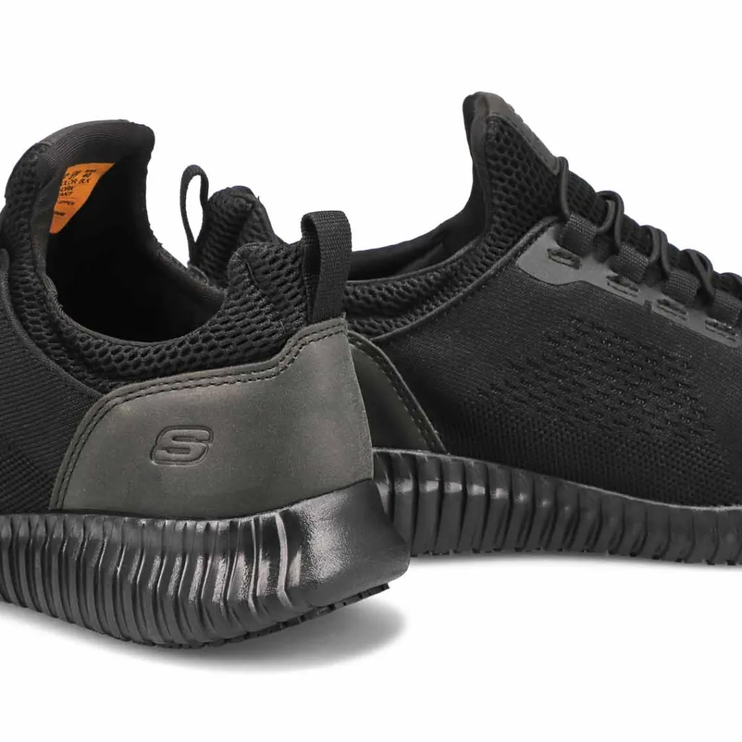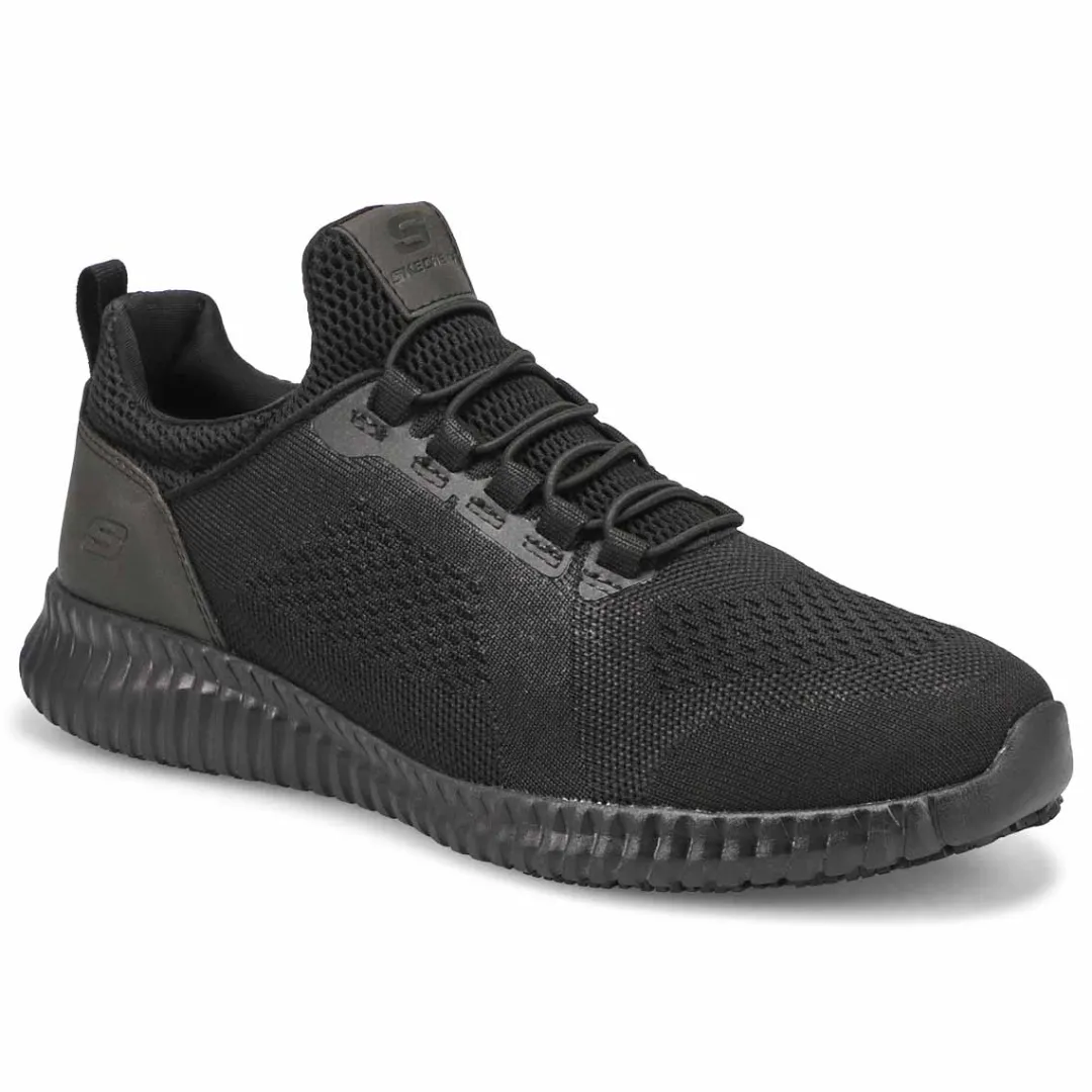 Refined sporty style and all-day protected comfort combine in the Skechers Work Relaxed Fit: Cessnock shoe. This slip-resistant sneaker features a smooth mesh knit upper with a slip-on bungee-laced front and cushioned Memory Foam insole. Water and stain-resistant athletic mesh upper. Relaxed Fit design for a roomy comfortable fit. Slip-resistant traction outsole with oil resistance. Electrical Hazard (EH) – ASTM F2413-2011-approved for safety.