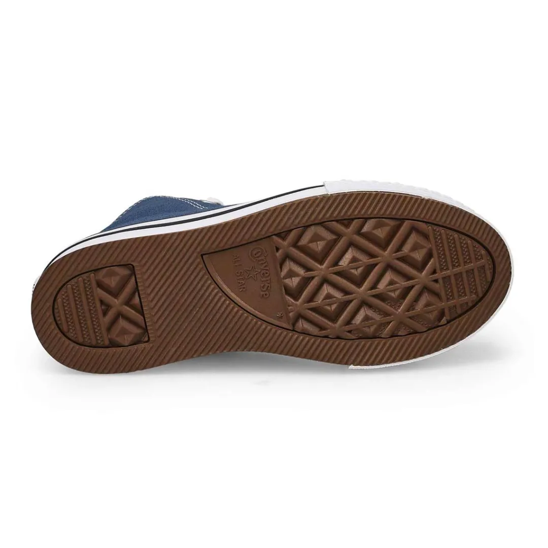 Lift Off! The high top, court favorite gets redesigned for kids, with a cushioned SmartFOAM sockliner, plus softened stitches and linings. The classic canvas upper sits on top of an EVA foam platform midsole for elevated style. The look is finished with Chuck Taylor All Star classics like a star ankle patch, contrast midsole stripes, and diamond pattern outsole.