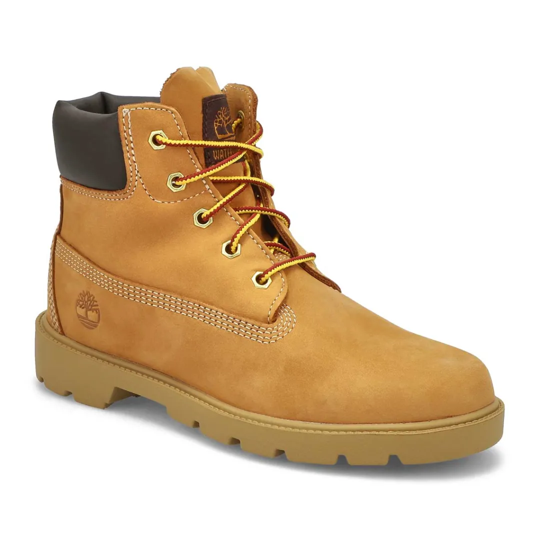 The wheat Basic 6″ kids’ waterproof boots are inspired by the original Timberland boots, and feature the same rugged outdoor styling and hard-wearing construction. These are built to protect kids’ feet through puddles, rain, mud and whatever else gets in their way. More than a basic vibe for their look this fall.