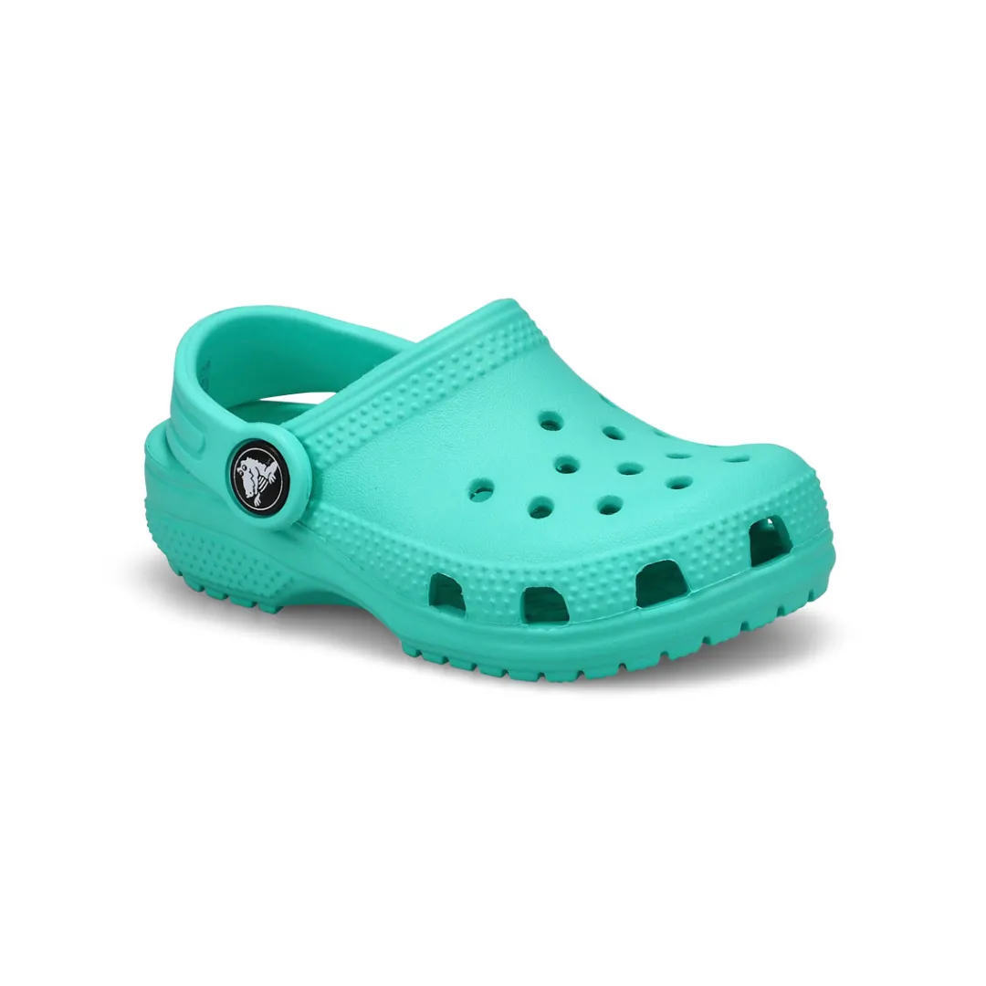 Your little one will be happy walking on the beach, or walking anywhere in the Crocs original Classic EVA clogs that are the most comfortable and versatile shoes. Ultra-hip Italian styling with a heel strap that can be rolled forward or left behind. Vented so air passes through, keeping feet cool. Molded footbed is bacteria and odor resistant.