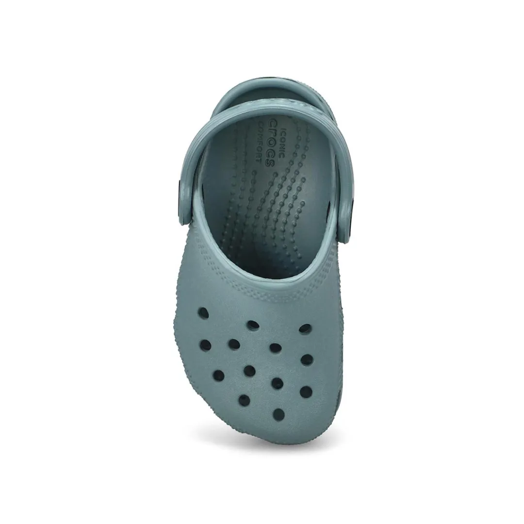 Your little one will be happy walking on the beach, or walking anywhere in the Crocs original Classic EVA black clogs that are the most comfortable and versatile shoes. Ultra-hip Italian styling with a heel strap that can be rolled forward or left behind. Vented so air passes through, keeping feet cool. Molded footbed is bacteria and odor resistant.