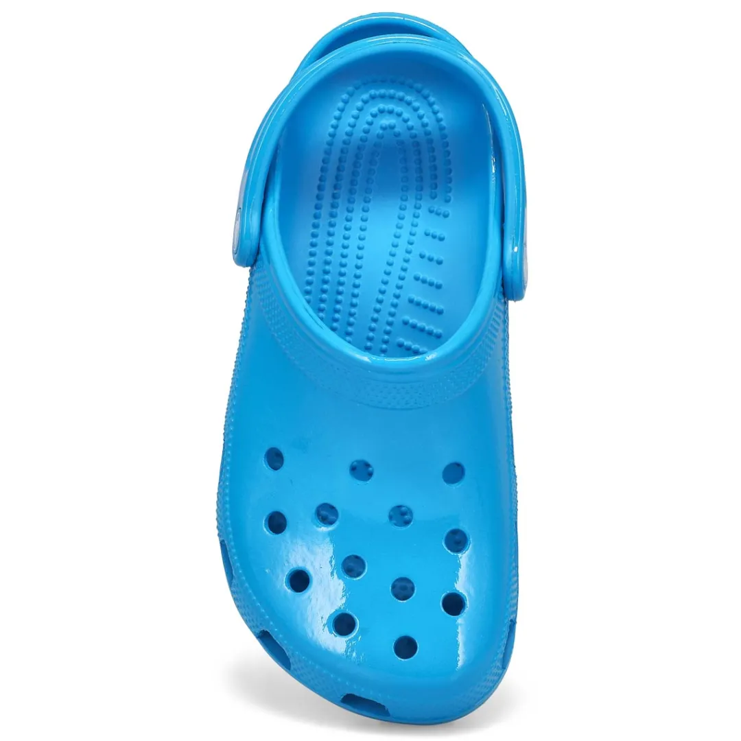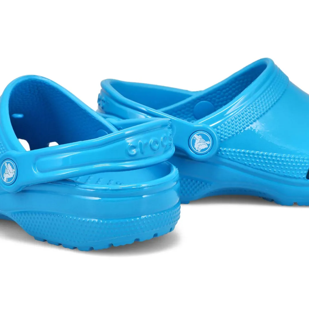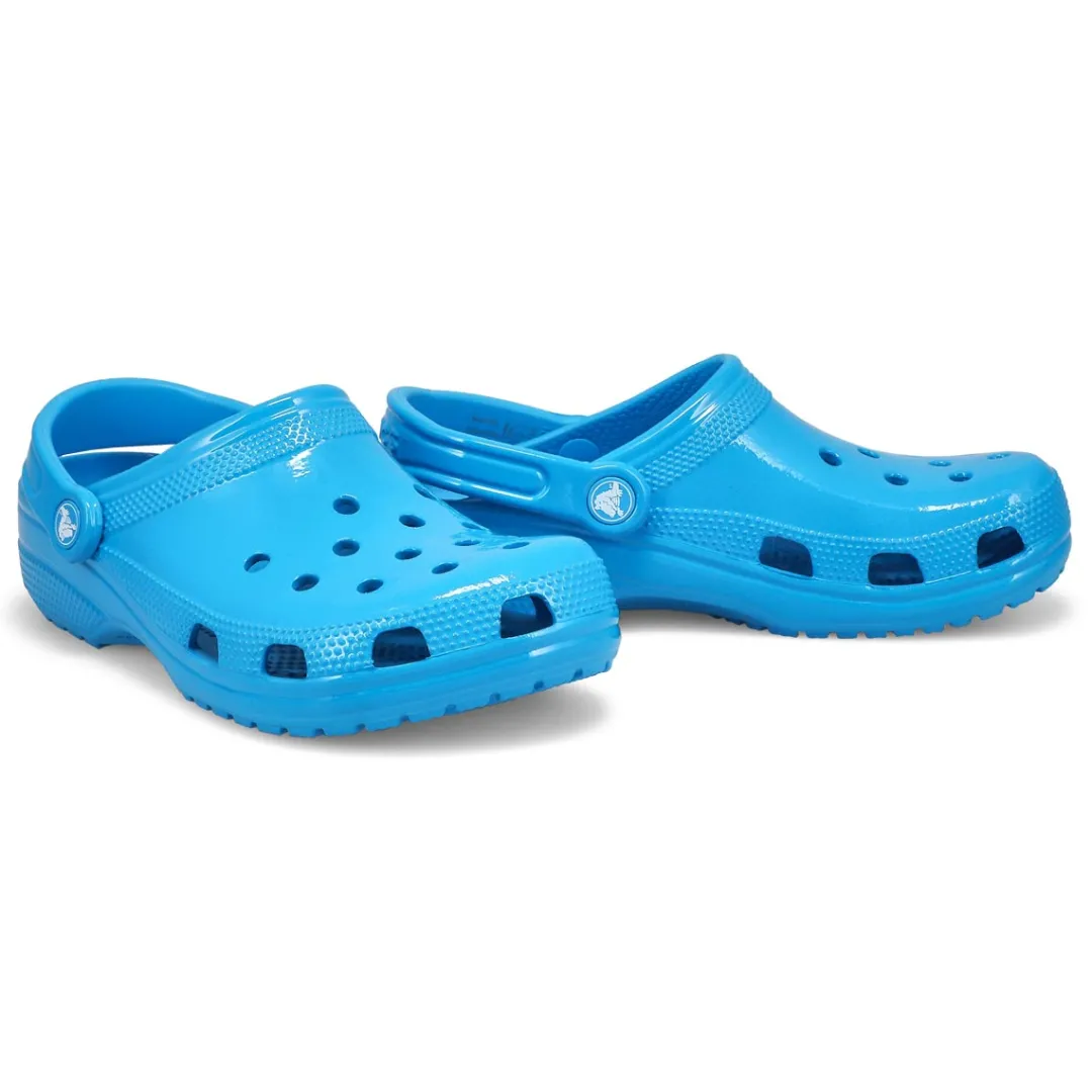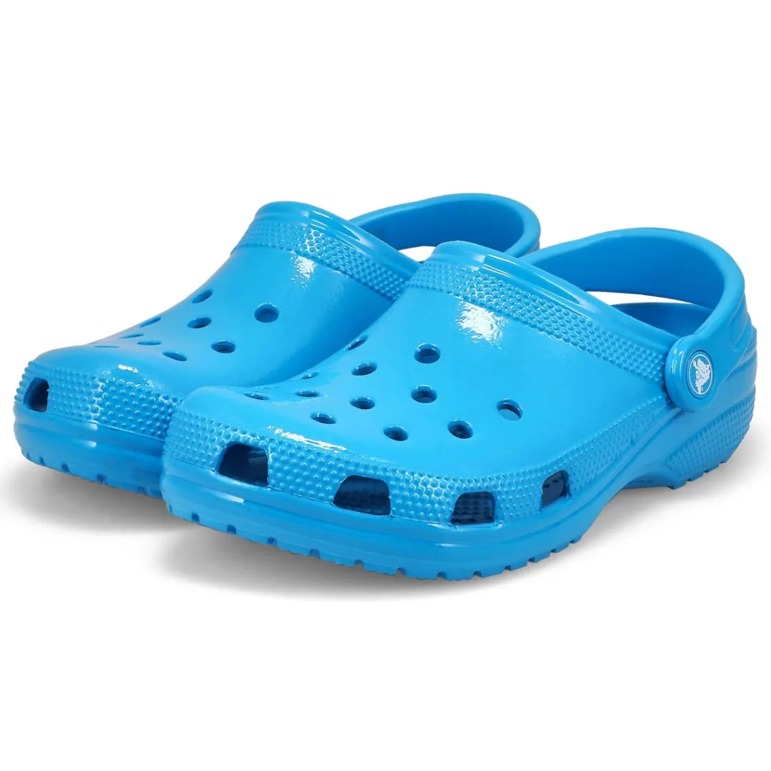 The Classic Neon Highlighter pink crush clog from Crocs delivers shiny neon colors that provide extra style to this version of the iconic clog. The fun neon colors and super high shine new treatment help you show off your creative spirit, and Croslite foam construction keeps them light and easy to wear. Grounded in comfort, spiked with personality.