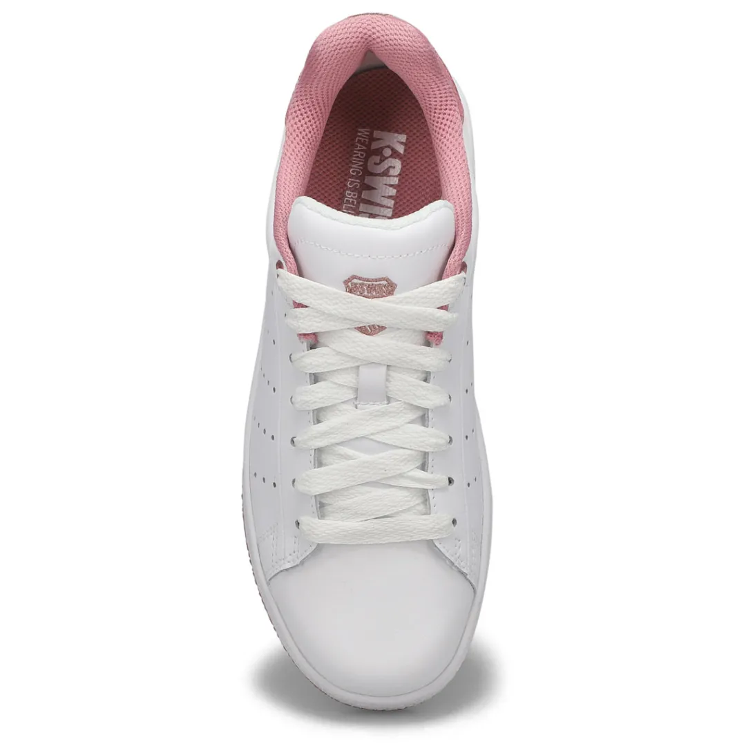 The Classic PF Platform white/ floxglove sneaker from K-Swiss is an elegant and sophisticated take on sportswear styling. With a sleek and clean upper design over a fashion forward heritage inspired platform outsole, the Classic PF Platform sneaker has a bold look while being easy to wear with any outfit.