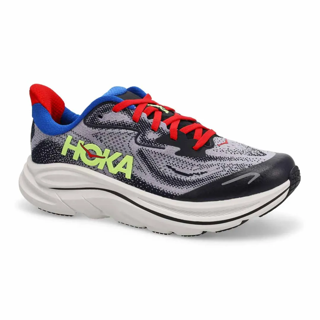 Designed for future flyers, the Clifton 10 delivers the same cushy comfort and cutting-edge performance as our adult style in a slightly smaller package. Updated with a breathable jacquard upper for enhanced airflow, we’ve cued up a hyper cushy midsole, rugged rubber outsole, and hardwearing toe cap to keep up with up-and-coming athletes. Offered in a spectrum of endorphin-chasing hues, the Clifton 10 has been finished with reflective hits to help kids shine bright.
