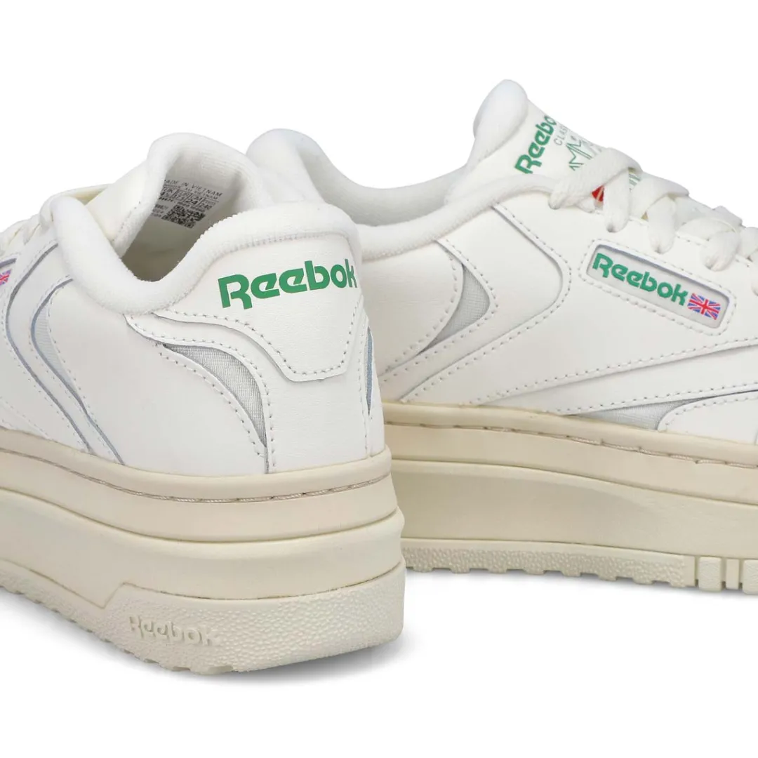 Being extra is a good thing. These Reebok Club C Extra chalk/chalk/glengreen shoes prove it. An exaggerated platform midsole with a geometric design gives you an amplified look. Don’t miss the outsole which has a 3D tennis racket effect. Subtle hits of iconic color on the leather upper seal the deal.