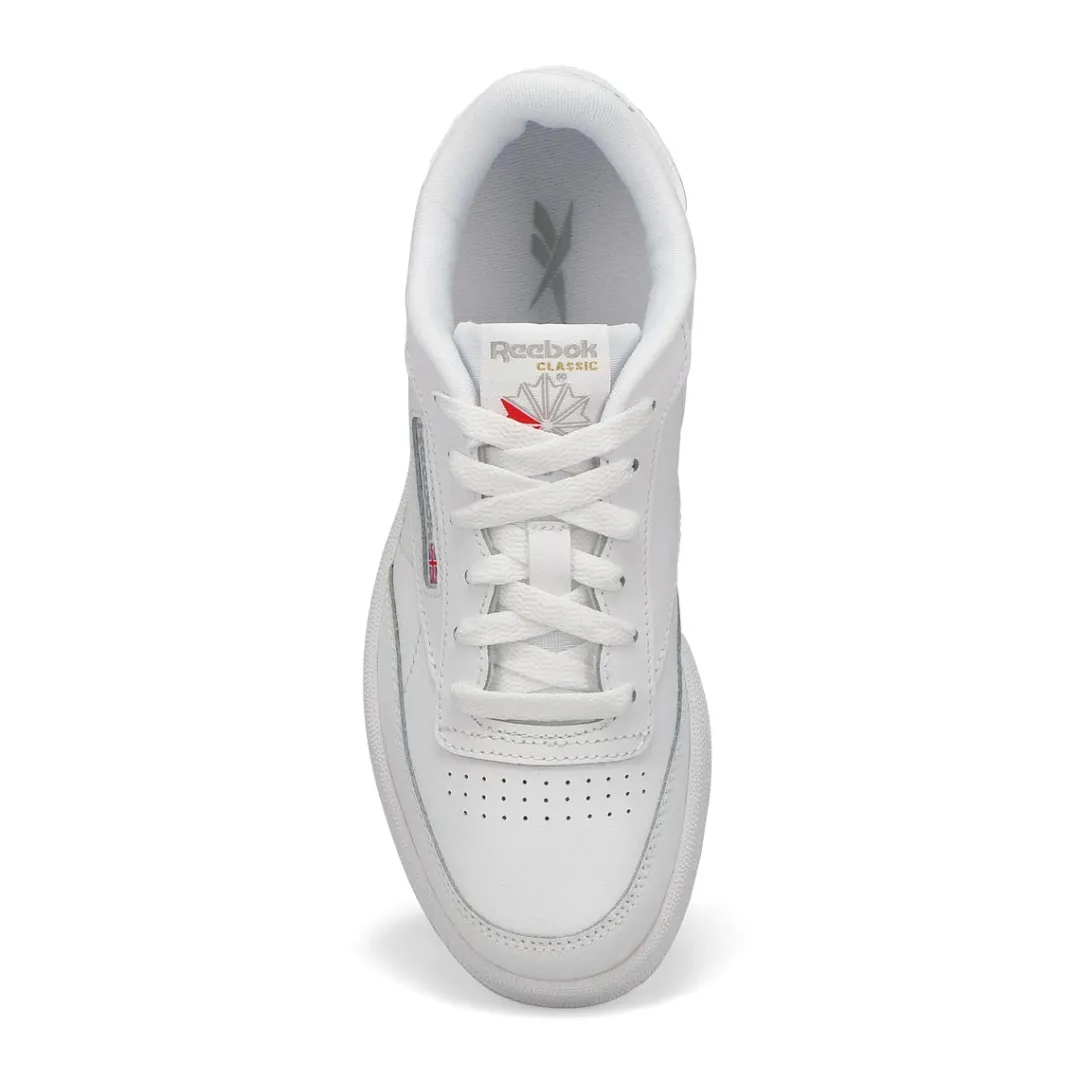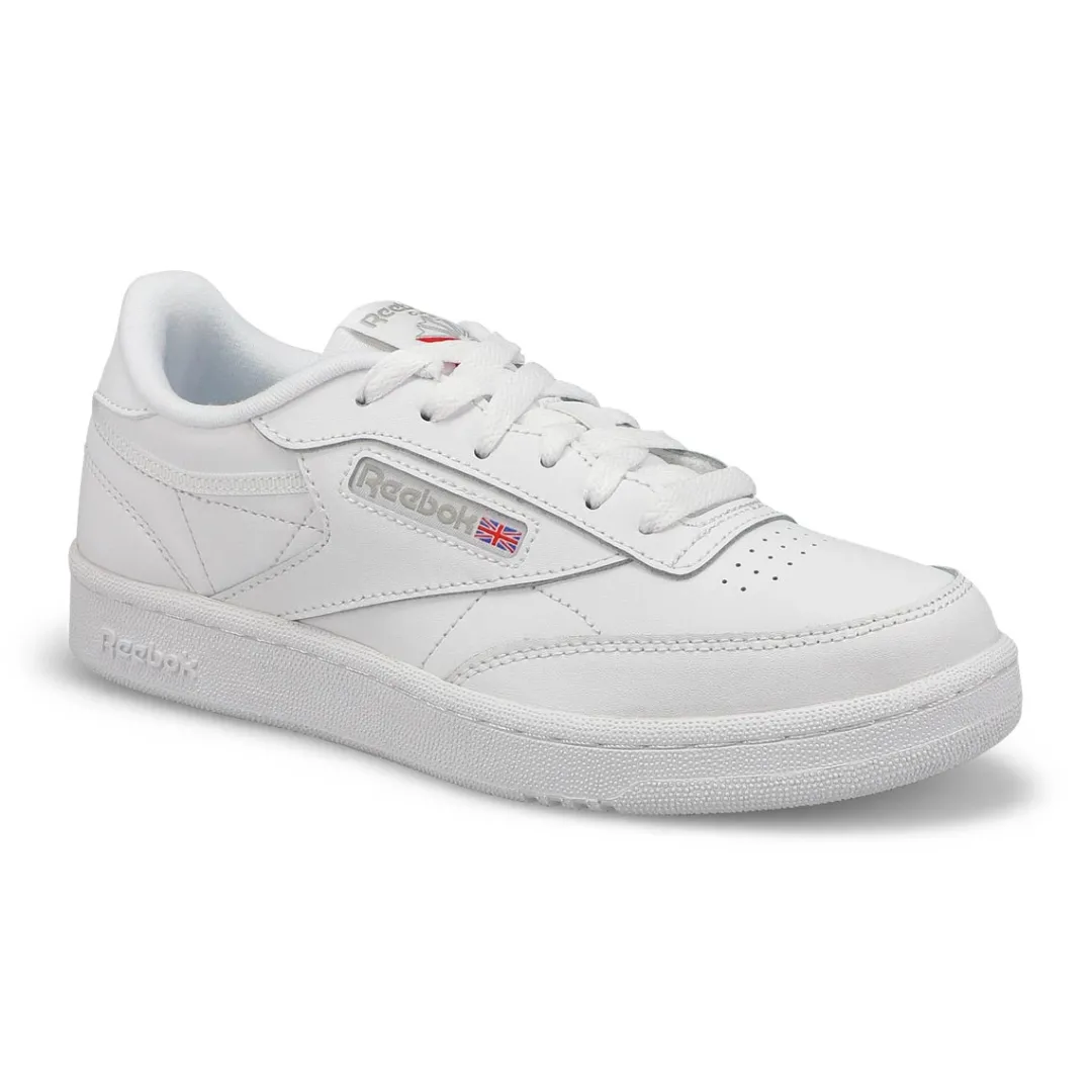 Clean, minimalist design. The Club C chalk/ chalk/ green tennis-inspired shoes from Reebok keeps your look sleek and simple. A Reebok logo window with a Union Jack gives them old-school style. The upper is made of soft, flexible leather. High-abrasion-resistant rubber outsole adds durable responsiveness. There’s nothing quite like a fresh sneaker!
