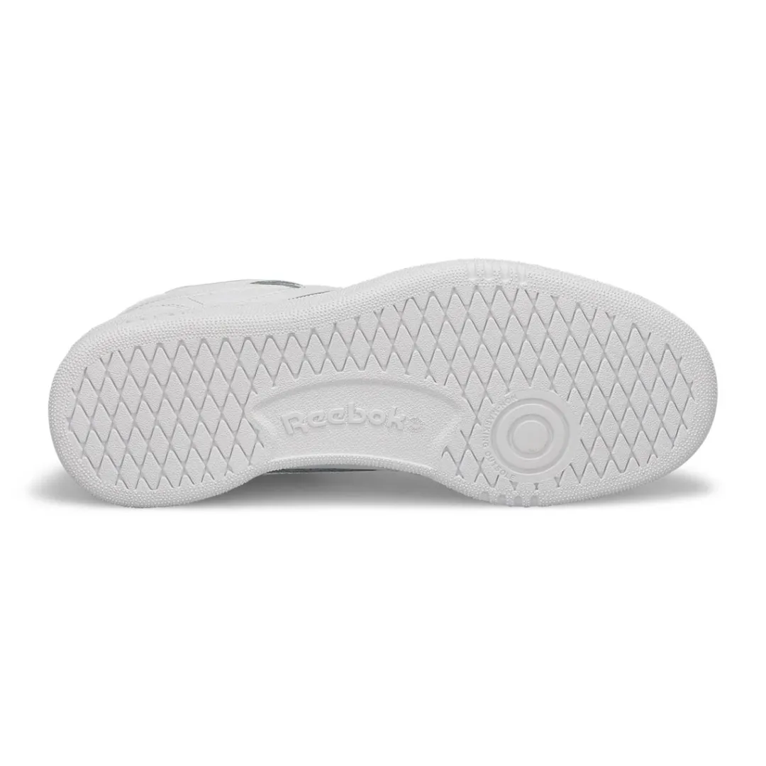 Clean, minimalist design. The Club C white tennis-inspired shoes from Reebok keeps your look sleek and simple. A Reebok logo window with a Union Jack gives them old-school style. The upper is made of soft, flexible leather. High-abrasion-resistant rubber outsole adds durable responsiveness. There’s nothing quite like a fresh white sneaker!