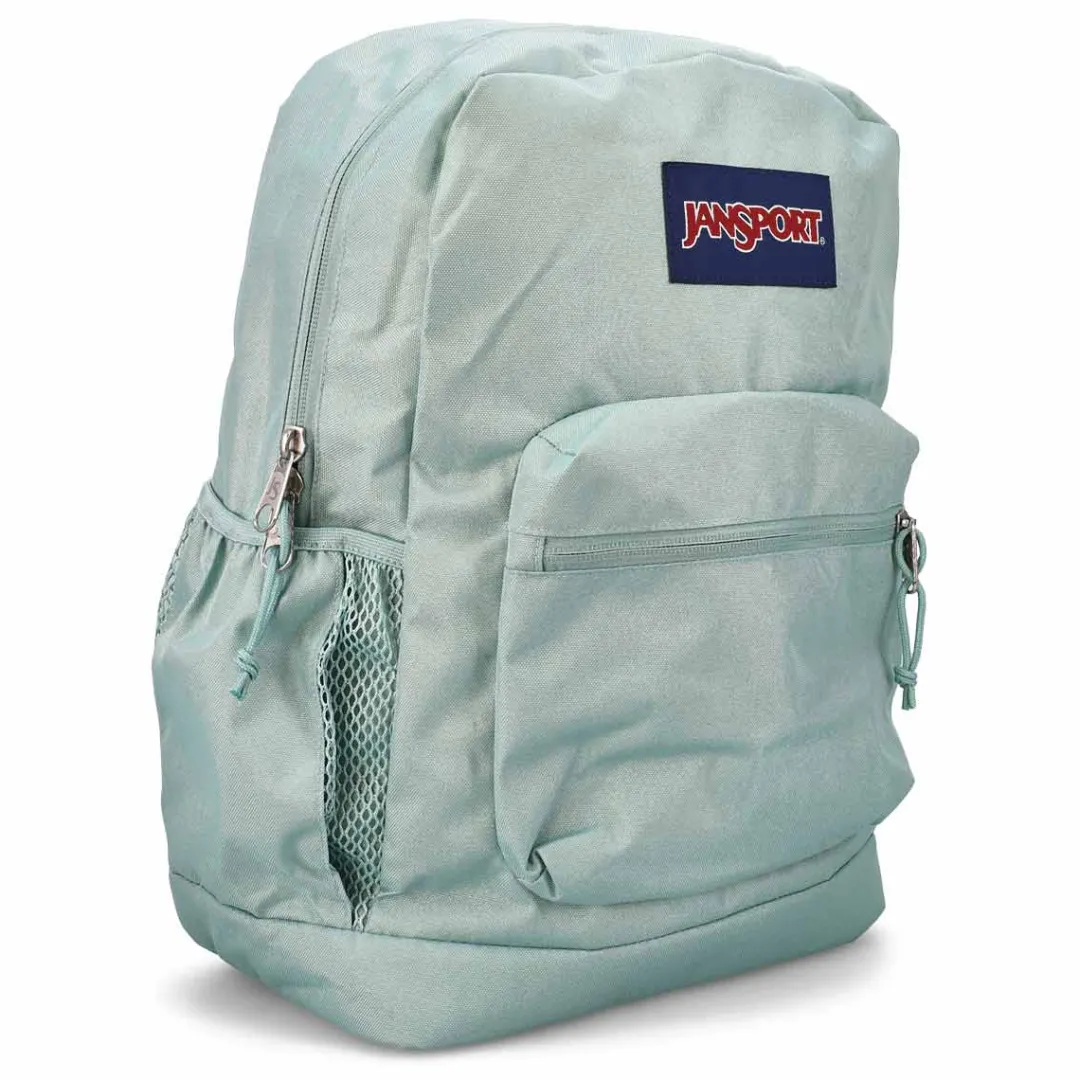 Featuring a classic silhouette, the Cross Town Plus misty pink backpacks from Jansport was designed ultralight with a side water bottle pocket for everyday use. Made from 600 Denier Polyester- Made in part with recycled materials. One large main compartment with web haul handle. Side water bottle pocket with a front utility pocket with organizer. Iconic straight-cut, padded shoulder straps. Internal padded sleeve fits 15″ laptop.