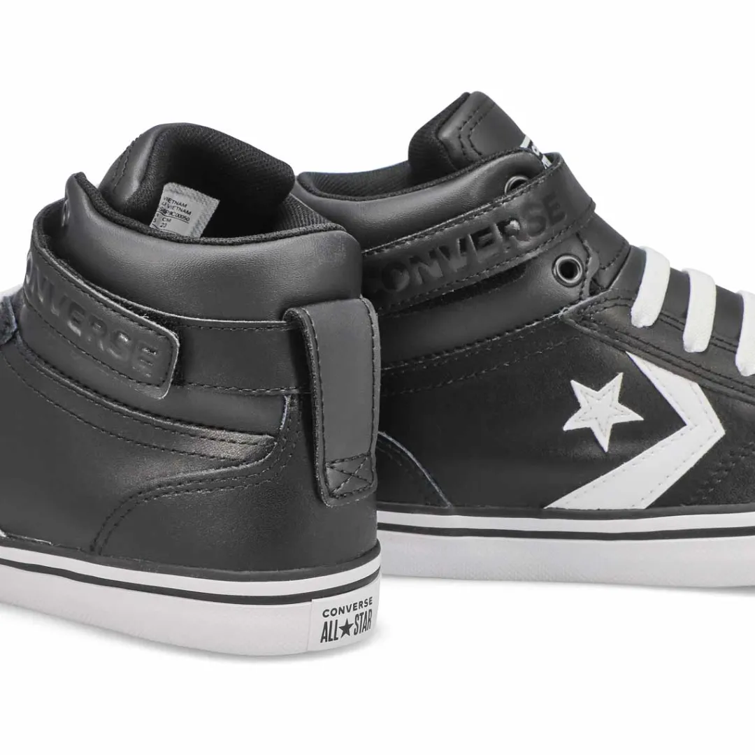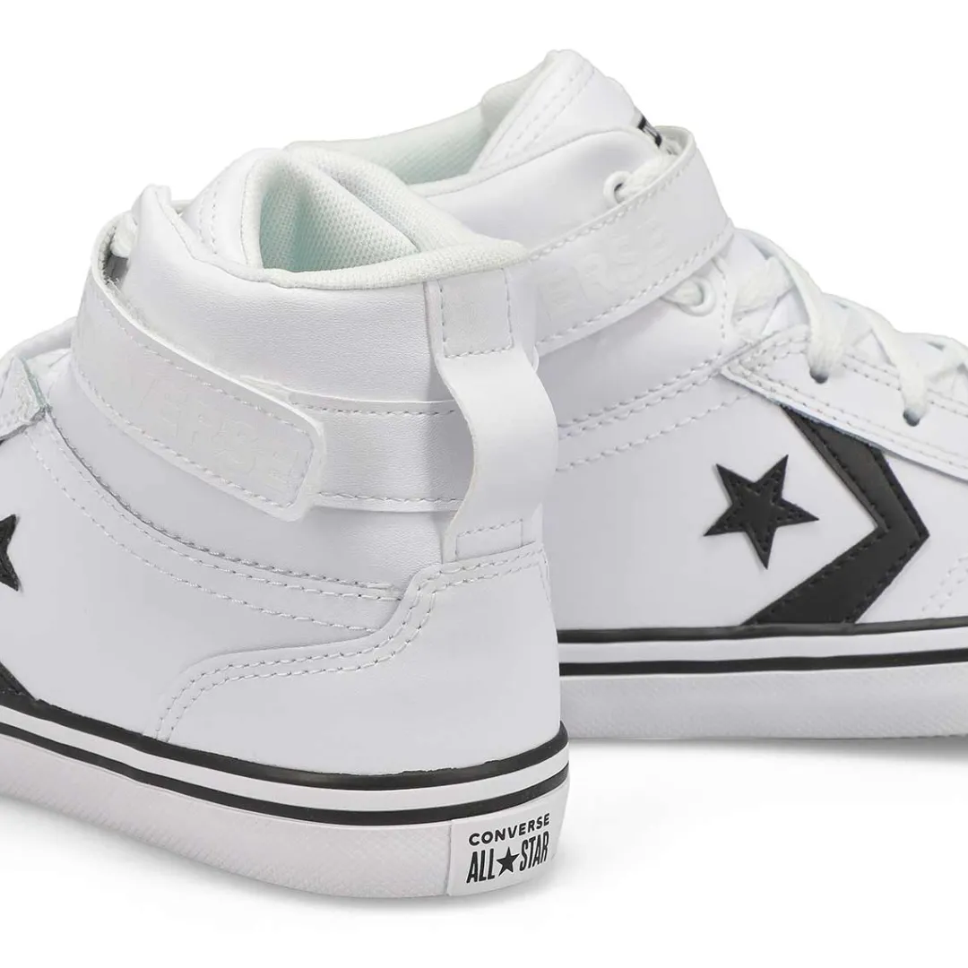 The original basketball shoe, now a defined style of its own! The Pro Blaze Strap white/ black sneakers from Converse is always in style. Genuine leather upper with a cushioned insole for added comfort. Elastic lace with hook & loop closure at top. Vulcanized rubber outsole for increased traction and flexibility.