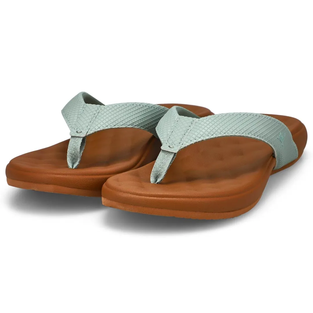 The Reef Cushion Harmony is a thong-style sandal designed for exceptional comfort and casual versatility. It features a soft memory foam lining, a cushioned PU midsole that molds to your feet, and a flexible sponge rubber outsole. The synthetic leather upper adds durability and a stylish finish, making it ideal for both beach outings and everyday wear.