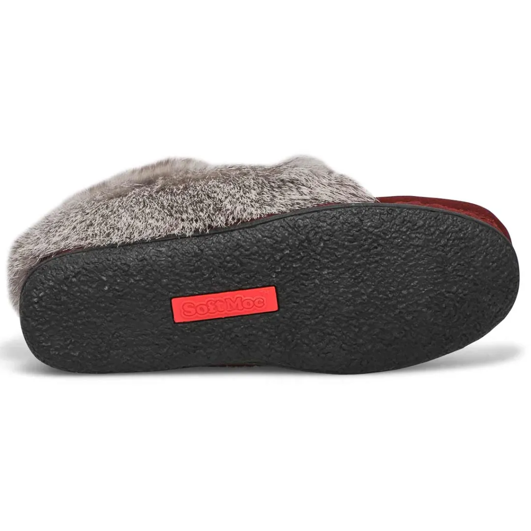 The SoftMoc Cute 5 chocolate rabbit fur SoftMocs features a suede upper collared with genuine rabbit fur. The Cute 5 is designed with a new and inproved combination latex and memory foam insole, giving you superior rebound comfort.. New upgraded soft, plush lining surrounds the foot in comfort. The TPR outsole is great for durability. Slight dye transfer may occur during the first few wearings. Style is not made for snow or ice conditions.