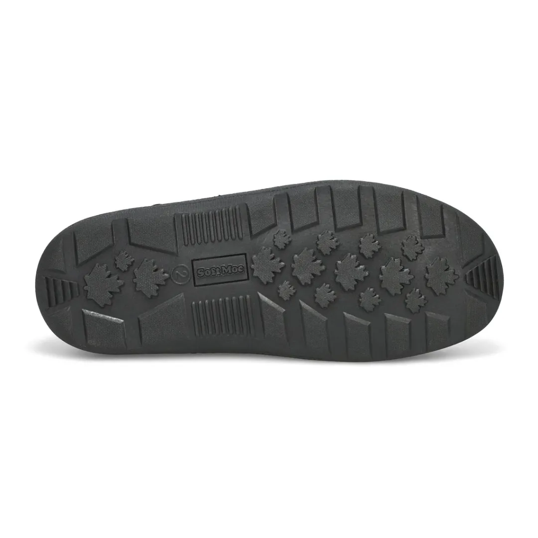 Their feet will thank you once they slip on the Danny Jr navy SoftMocs slipper from SoftMoc. Featuring beautiful suede upper with a soft plus lining that surrounds the foot in comfort. The Danny SoftMocs is designed with a durable TPR sole allows for indoor/outdoor use. Slight dye transfer may occur with darker coloured sheepskin during first few weeks of wear.