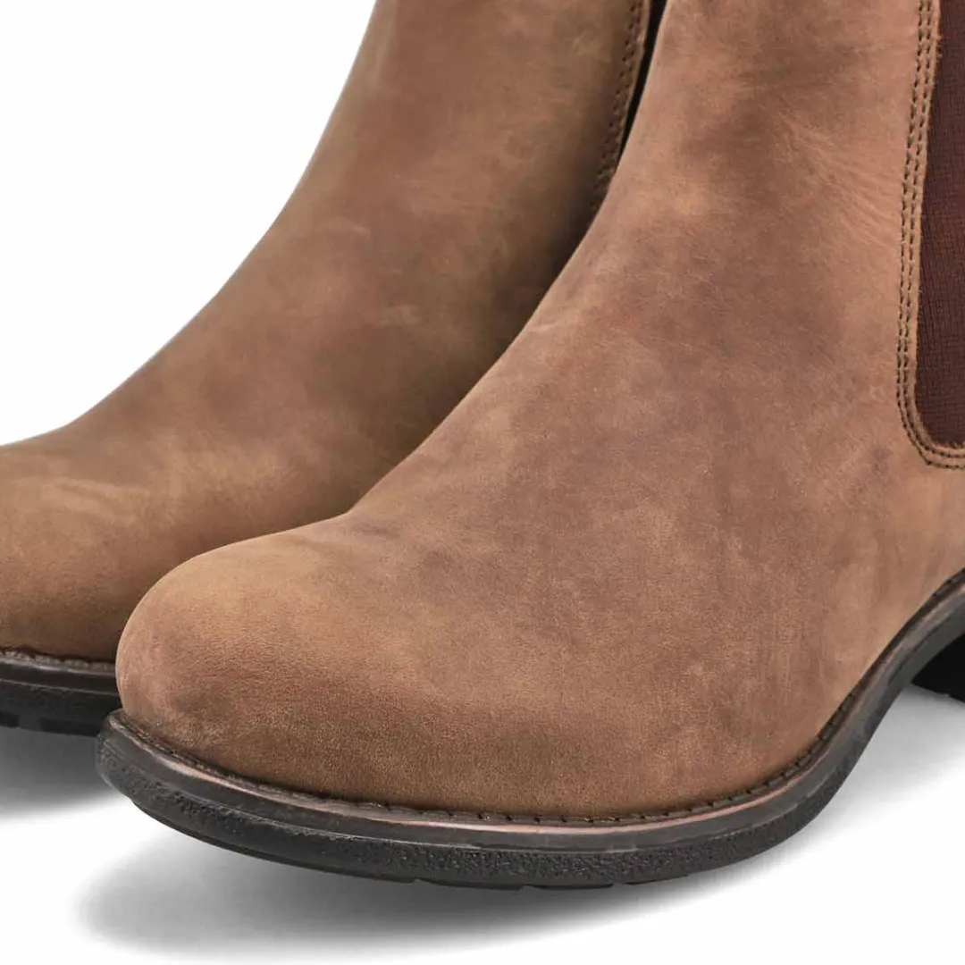 The Darilyn 2 Chelsea rustic brown boot from Maddison by SoftMoc is a stylish silhouette to your wardrobe. Featuring a genuine leather upper with stitching detailing. Elastic goring for easy on and off. DurableTPR Outsole. You will want to make the Darilyn 2 chelsea boot part of your must-have list for this season!