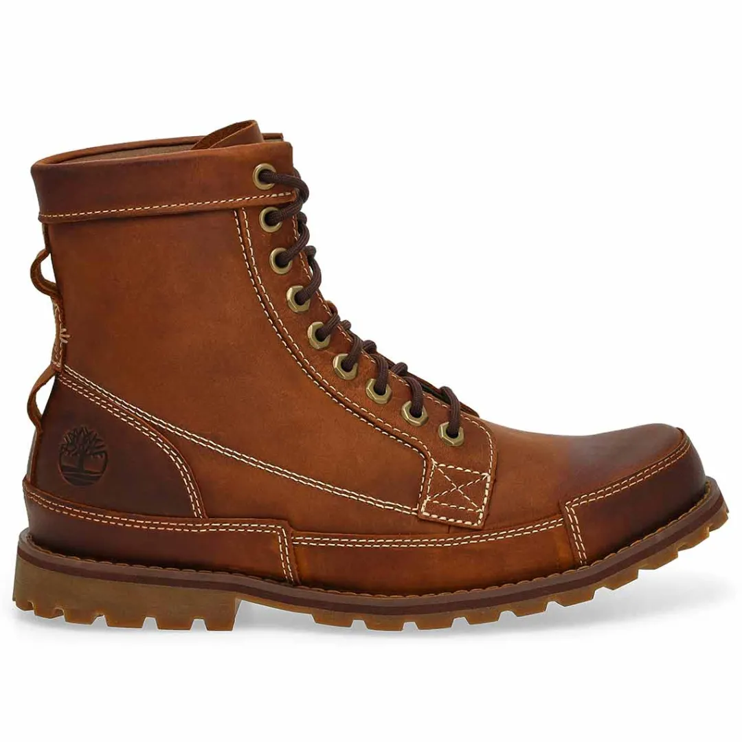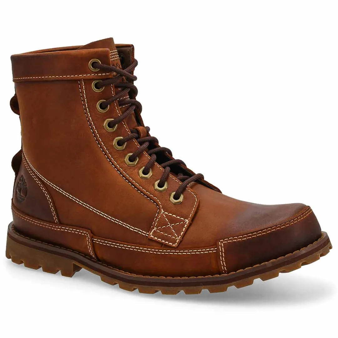 Handle your next season in comfort with the Originals Earthkeepers Boot from Timberland. The boot features a Premium Timberland leather and a ReBOTL lining containing at least 50% recycled plastic. The steel shank helps provide arch support while the EVA midsole helps cushion your feet, and the rugged rubber outsole helps you stick to the trail.