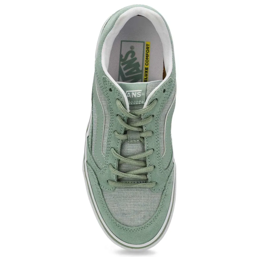 Lend a personal touch to your outfit with the Fairview Deluxe gray olive lace up skateboard shoe from Vans. Crafted from a suede upper with multiple overlays, these sneakers feature a lace-up closure, a padded tongue and collar, a soft lining, a padded footbed and a vulcanized rubber outsole with a waffle pattern.