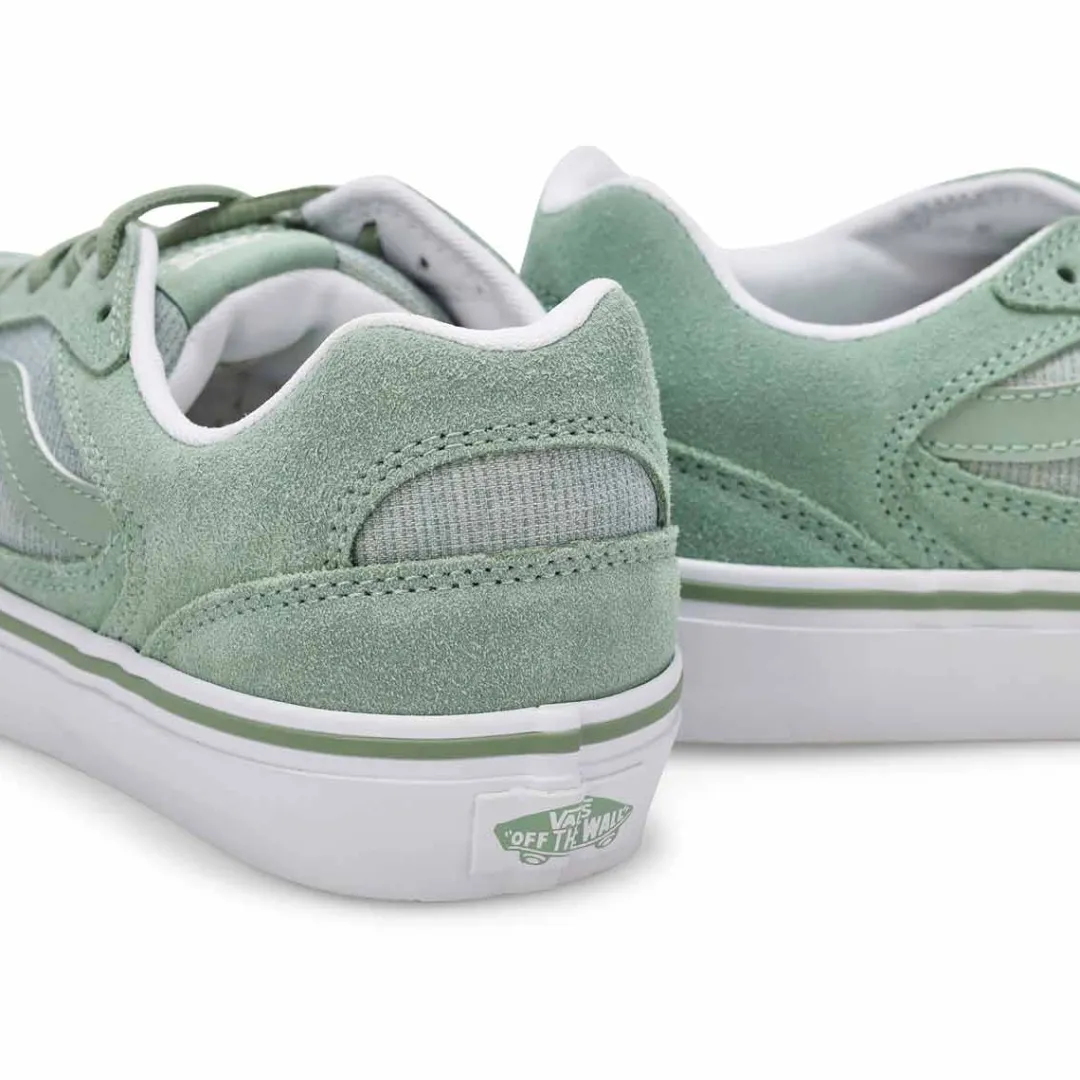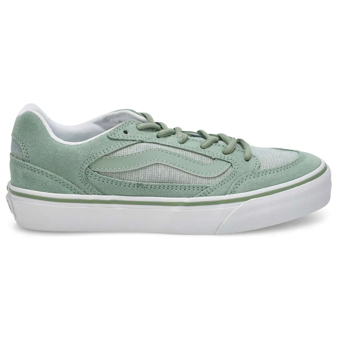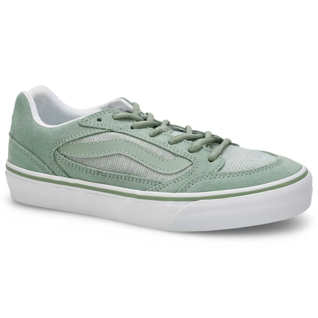 Lend a personal touch to your outfit with the Fairview Deluxe gray olive lace up skateboard shoe from Vans. Crafted from a suede upper with multiple overlays, these sneakers feature a lace-up closure, a padded tongue and collar, a soft lining, a padded footbed and a vulcanized rubber outsole with a waffle pattern