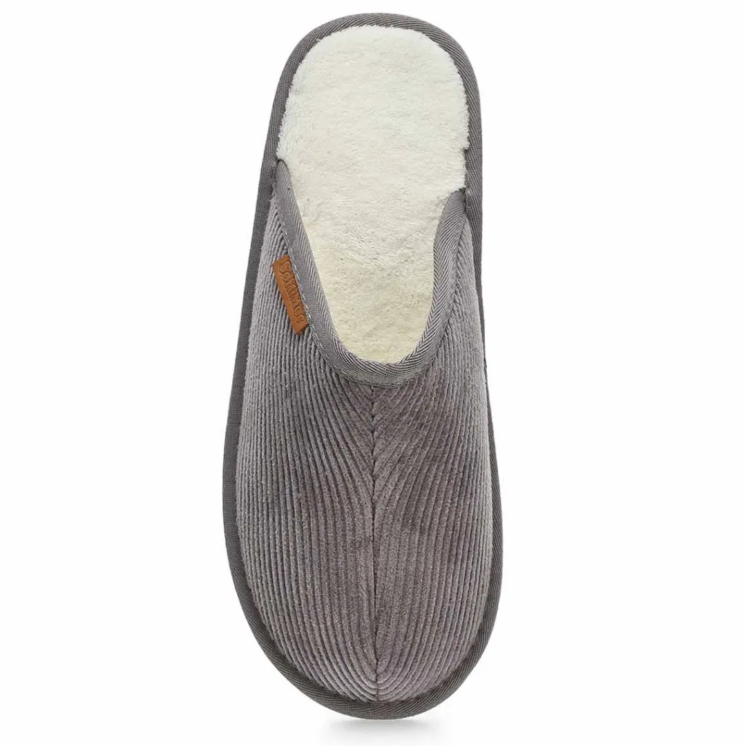 You will love the comfort and the warmth provided by theFella Open Back black slipper from SoftMoc. Featuring beautiful corduroy upper. Memory foam padded insole surrounds the foot in comfort. Easy slip on styling for easy on/off. Durable rubberlon outsole. They are the perfect gift for someone special or just a treat for you.