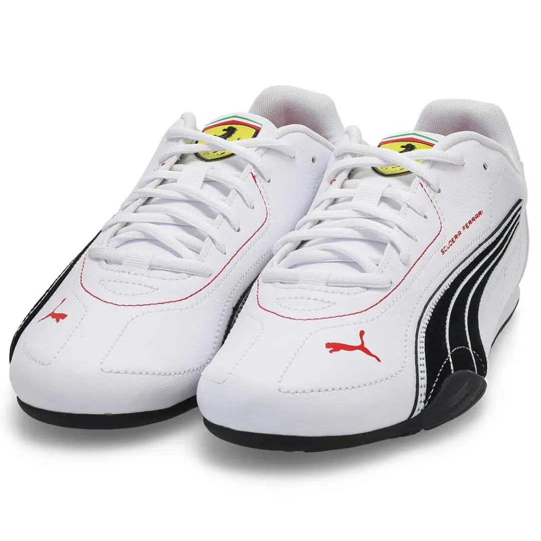 Unleash your inner racer with Ferrari Catch white/ black lace up sneaker from Puma. The latest collection blends the thrill of the track with street-ready sophistication. Designed for fans who appreciate sleek, casual, and refined everyday wear, it captures Ferrari’s racing legacy through clean lines, oversized silhouettes, and understated elegance.
