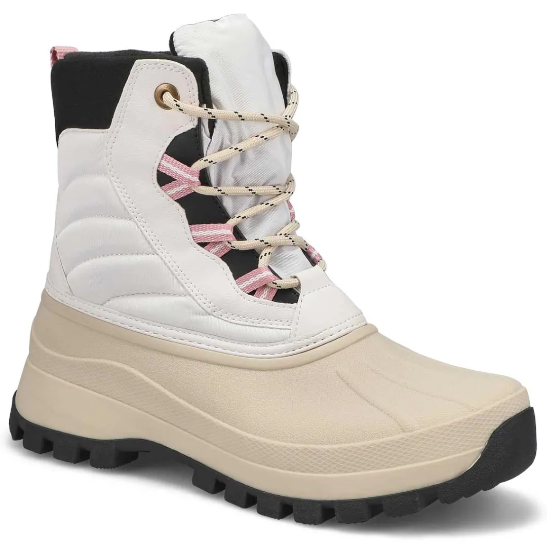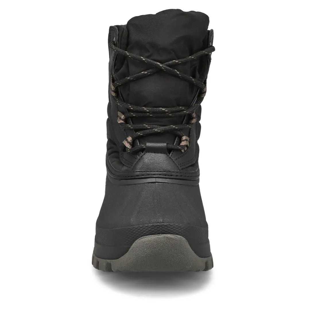 The Fiska Waterproof black winter boot from Cougar is a mid-calf, light-weight nylon and synthetic winter boot. Featuring a rounded toe and front lace closure for a secure fit. Polar plush lining with Thermlite Insulation. Polar fleece lining surrounds the foot in soft comfort. Slip-resistant, Thermoplastic rubber outsole with lightweight EVA midsole.