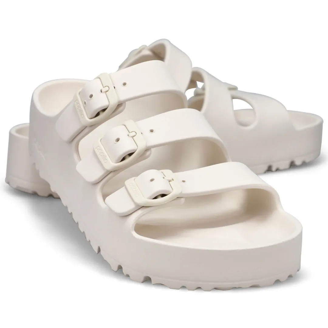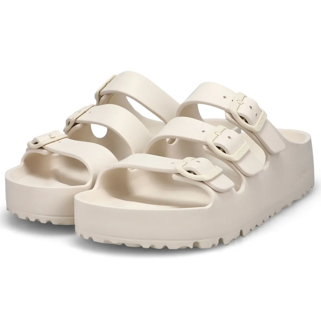 Step into laid-back luxury with the Florida III Platform EVA 3 Strap sandal from Birkenstock. Designed for all-day comfort and casual cool, this versatile platform sandal features lightweight EVA construction and three fully adjustable straps for a customizable fit. The contoured footbed supports your natural stride, while the chunky platform sole adds height without sacrificing ease. Perfect for beach days, errands, or everyday wear—this is effortless style with a modern edge. Made in Germany. Narrow Width.