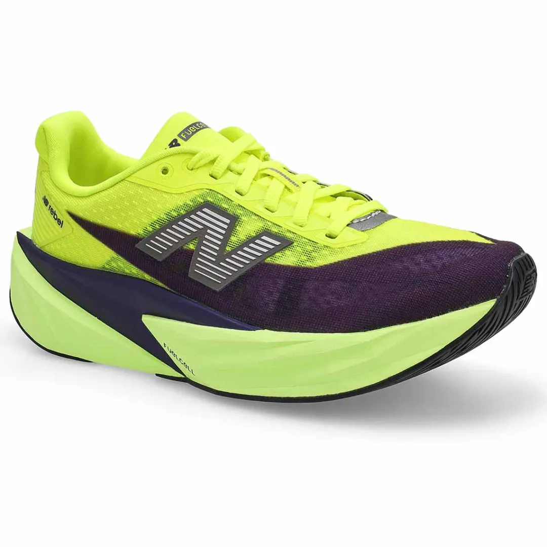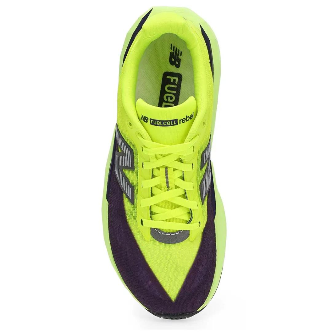 The FuelCell Rebel v5 from New Balance was built to look and feel fast. With its streamlined, race-inspired mesh upper and colorblocking designs, the resulting silhouette boasts a modern style that inspires, surprises, and confidently stands out ahead of the pack. Incredibly lightweight, its blend of PEBA and EVA foams and considered midsole geometry provide a responsive and energetic underfoot, ideal for those miles you want to feel fast. Equipped with FuelCell midsole technology, this upbeat trainer can easily transition from long, steady runs to something swifter and more spontaneous.
