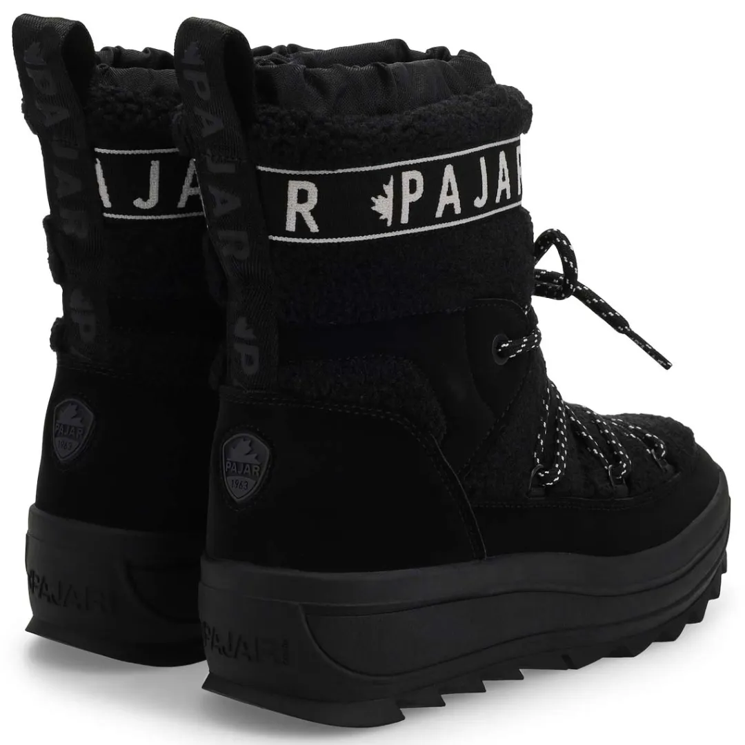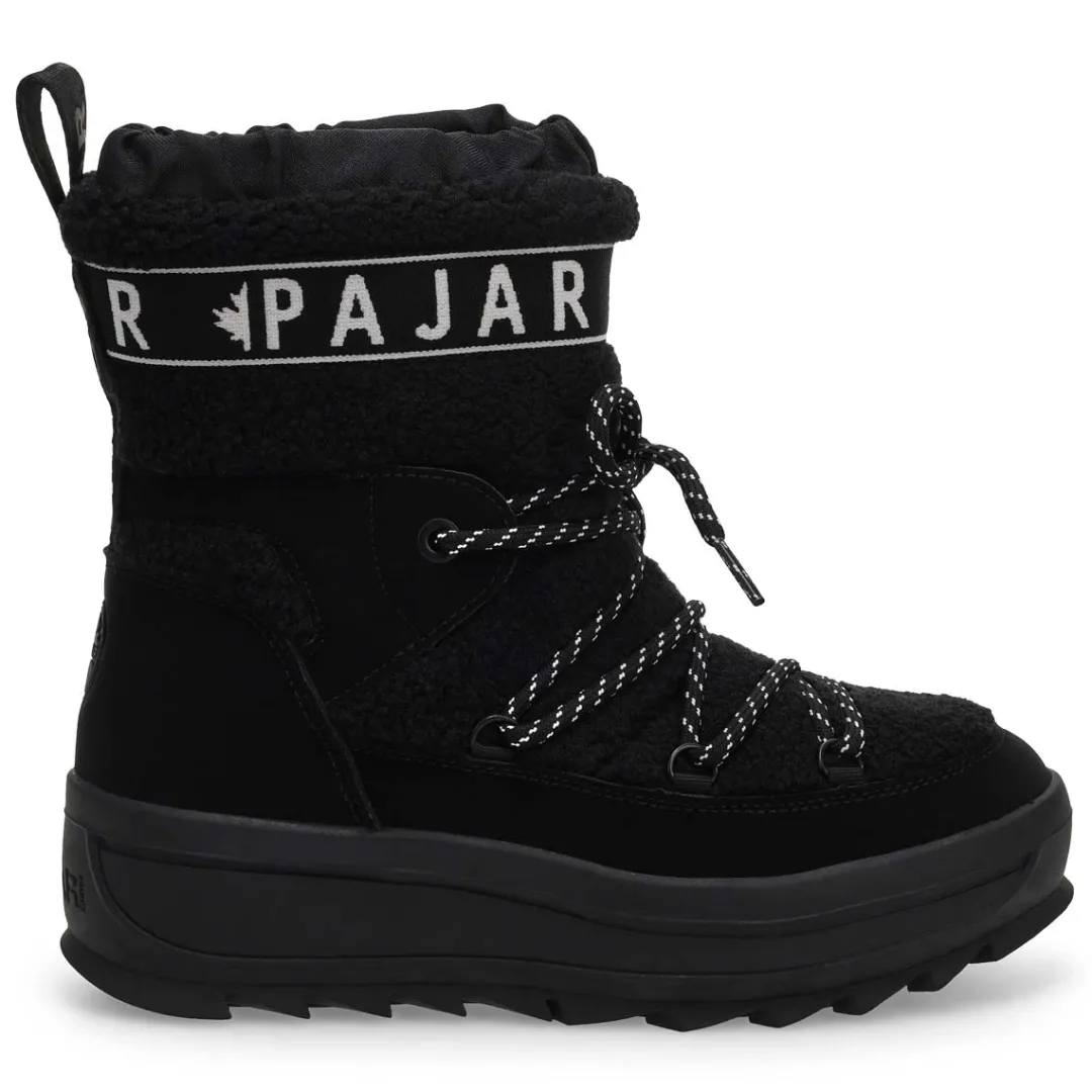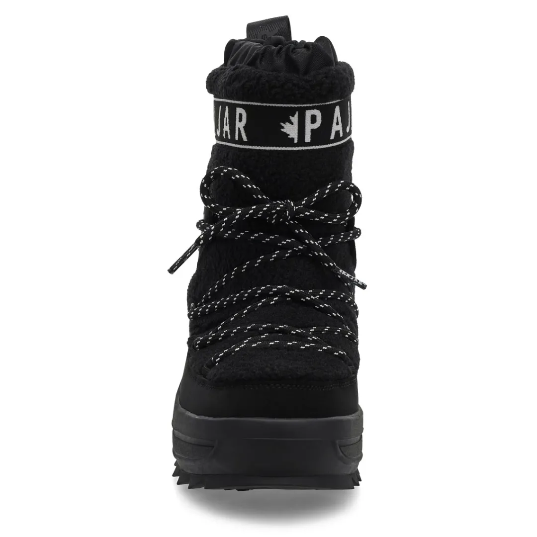 The Galaxy Lama beige Waterproof Winter Boot from Pajar features a combination of Sherpa and vegan nubuck upper. The upper is entirely seam-sealed and comfort rated to -30C to keep your feet snug all winter long with a mudguard. Featuring the signature Pajar Canada thermal rubber traction lug sole with 2-inch platform and will help you through icy streets in style keeping you surefooted all the while.